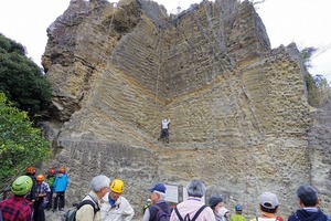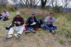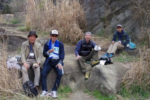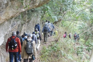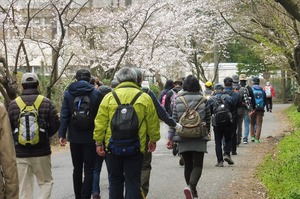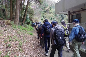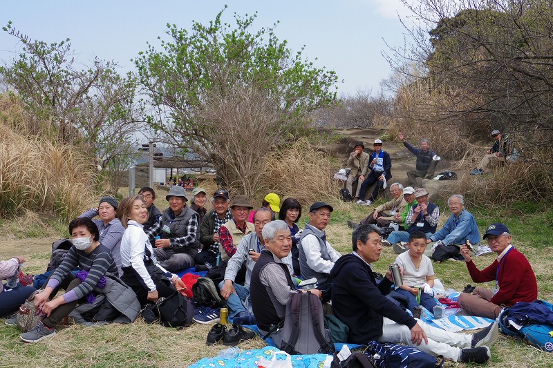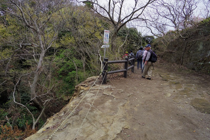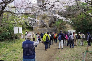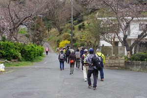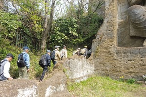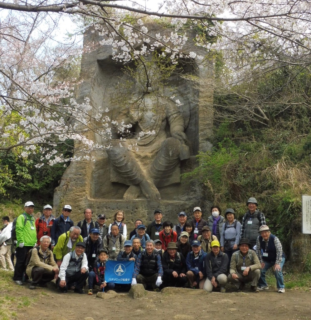 2019年3月28日(木)朝から曇り空の中、京急線神武寺駅前に午前10時集合。33名の参加者で実施しました。駅前で世話役の挨拶、コース説明後にスタート。桜の花咲く逗子中学校脇の鷹取山登山口からヒノキ並木の登山道を登り、桜並木の神武寺の表参道の合流点で小休止。神武寺の晩鐘前を歩き、薬師寺堂前で記念写真を撮り、奥の院から鷹取山の登山道に入りました。岩場の続くアップダウンの多い尾根道や急な鎖場を登り、頂上のロッククライミングの練習を見ながら鷹取山公園の横の広場で早めの昼食と休憩。公園から続く桜並木を背景に記念写真を撮りました。近くの鷹取山の磨崖仏前でも記念写真を撮りました。続いて磨崖仏の脇から鷹取山を下り、湘南鷹取山1丁目の道に降りて西友鷹取店前の満開の桜が続く桜並木道を楽しみながら歩き、国道16号線から京急追浜駅に到着。世話役から次回の案内を聞いて12時30分に解散。無事終了しました。ぶらり会を解散後、有志26名が横須賀中央であるこーる会を行い15時に解散した。
