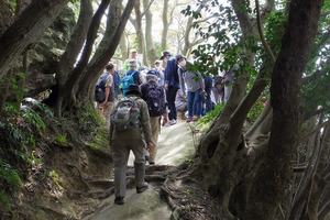 参加者33名(女性7名・孫1名) 天候:曇りのち晴 気温17℃ 徒歩3時間 4.8km 登りは45階に相当