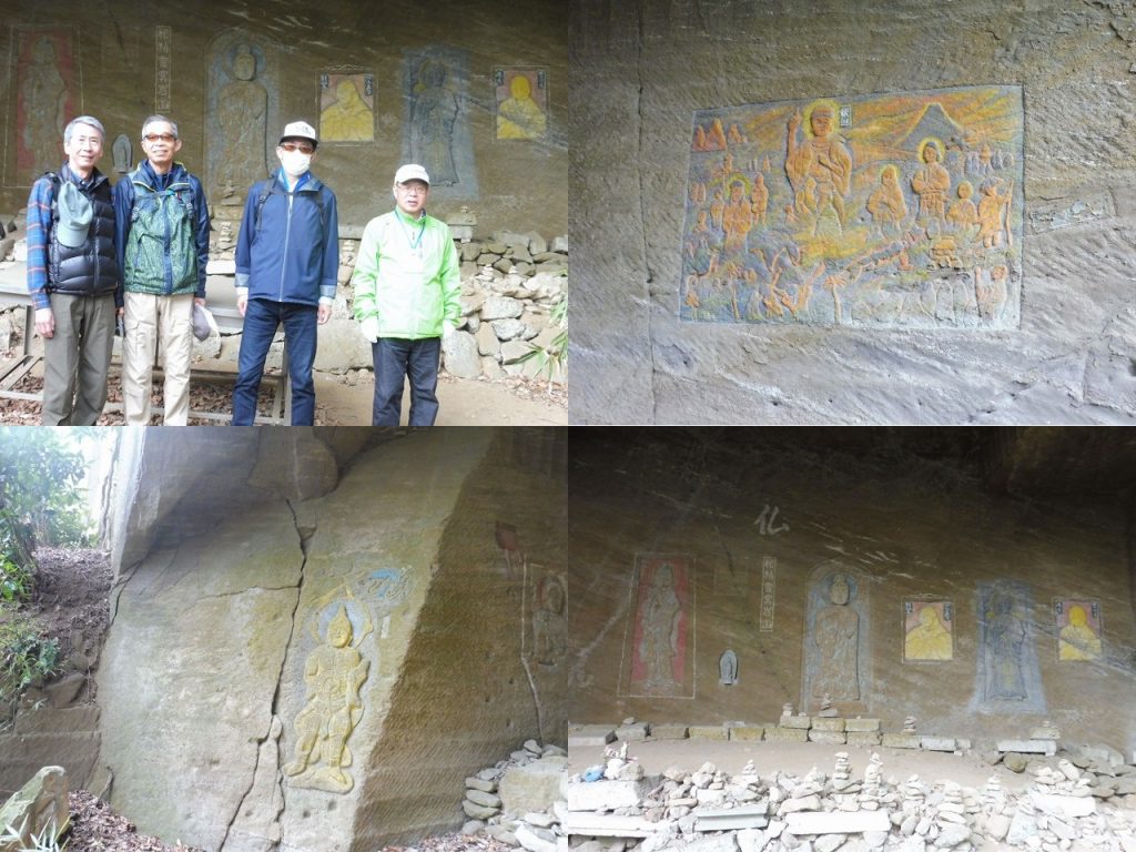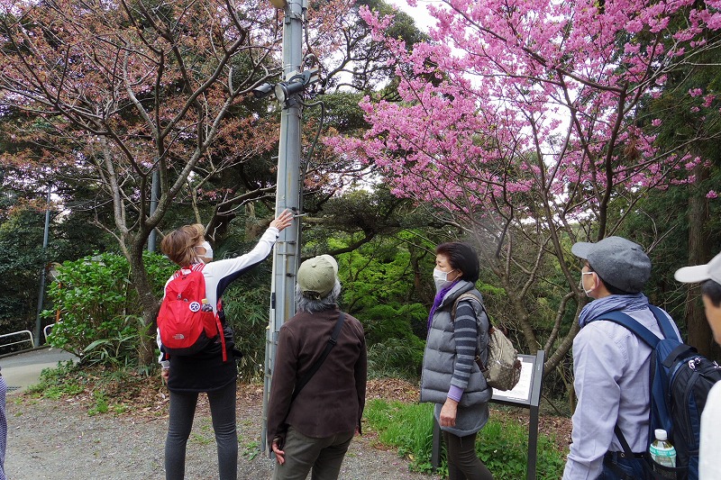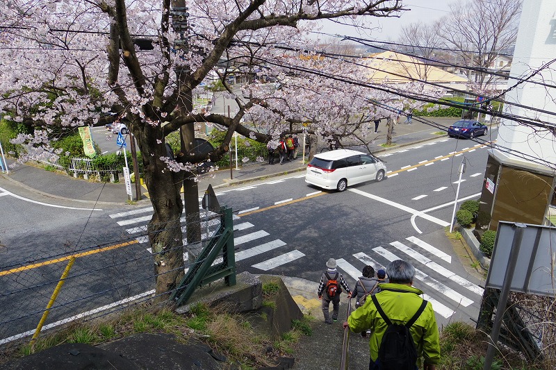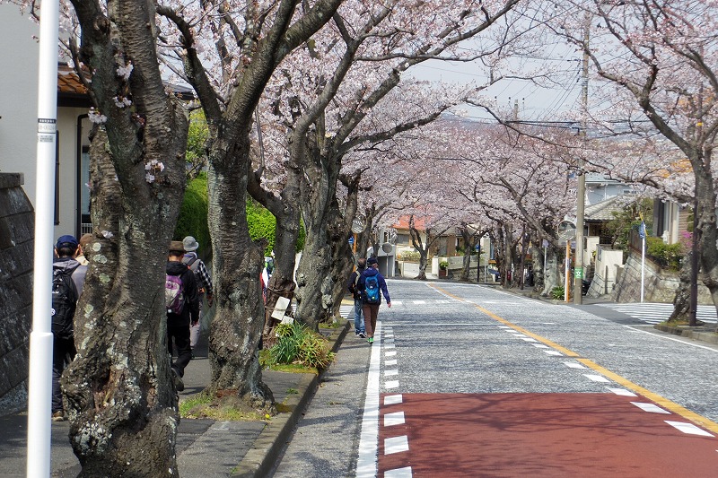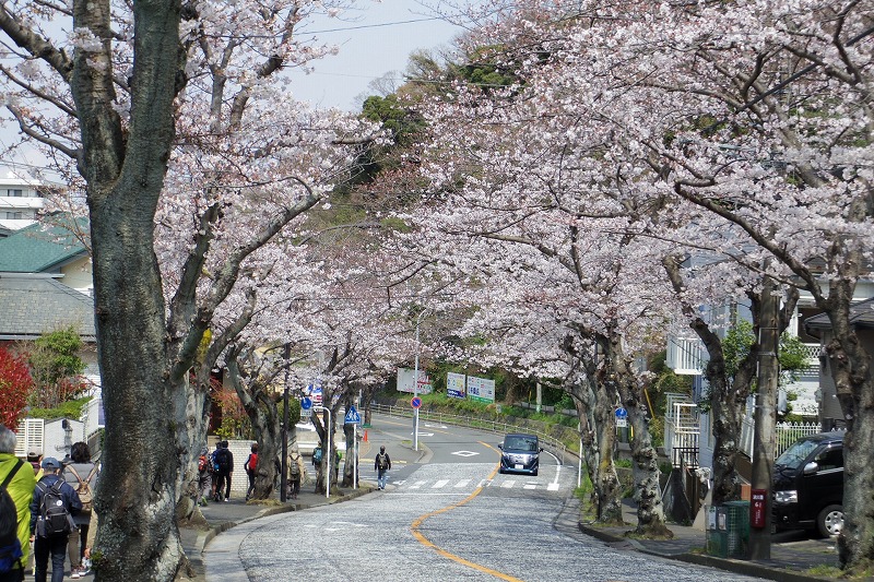 2019年3月28日(木)朝から曇り空の中、京急線神武寺駅前に午前10時集合。33名の参加者で実施しました。駅前で世話役の挨拶、コース説明後にスタート。桜の花咲く逗子中学校脇の鷹取山登山口からヒノキ並木の登山道を登り、桜並木の神武寺の表参道の合流点で小休止。神武寺の晩鐘前を歩き、薬師寺堂前で記念写真を撮り、奥の院から鷹取山の登山道に入りました。岩場の続くアップダウンの多い尾根道や急な鎖場を登り、頂上のロッククライミングの練習を見ながら鷹取山公園の横の広場で早めの昼食と休憩。公園から続く桜並木を背景に記念写真を撮りました。近くの鷹取山の磨崖仏前でも記念写真を撮りました。続いて磨崖仏の脇から鷹取山を下り、湘南鷹取山1丁目の道に降りて西友鷹取店前の満開の桜が続く桜並木道を楽しみながら歩き、国道16号線から京急追浜駅に到着。世話役から次回の案内を聞いて12時30分に解散。無事終了しました。ぶらり会を解散後、有志26名が横須賀中央であるこーる会を行い15時に解散した。