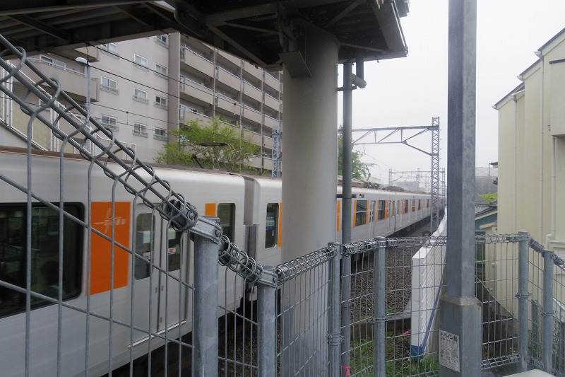 - 東横線の歩道橋 右方向が綱島駅です