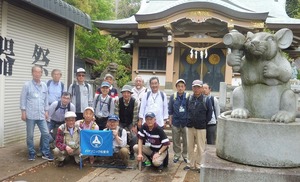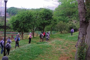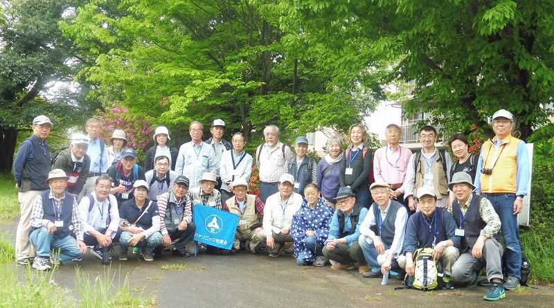 2019年4月25日(木)平成最後のぶらり会は、朝から小雨降る中、新会員1名を含めて30名で実施しました。東横線綱島駅改札前に10時に集合。受付を済ませて駅西口から少し歩いた東照寺の駐車場前に移動して世話役の挨拶、コース説明、新会員の自己紹介を聞いて小雨が降る中スタート。綱島西口商店街を通り、新緑の綱島市民の森を歩き、隣接の綱島公園で小休止。その後、東横線の歩道橋を渡り長福寺前を通り、綱島街道を横断。松下通信工業OBになじみの緩やかな坂道を登り諏訪神社をお参りしました。来た道と反対側の急な階段を下りて、元東京温泉があった場所で行われてる新綱島駅工事の現場を見ながら鶴見川の大綱橋を渡り、小雨が降り続く鶴見川河川敷歩き、太尾見晴らしの丘公園に到着。雨が止んだここで昼食と休憩。午後の歩きは、ここで記念写真を撮影してから開始。沢山の新緑の中を歩き新田緑道に到着。途中の専念寺に立ち寄り、続いて高台の新羽丘陵公園で休憩。ここで記念写真を撮り、北新羽杉山神社にてお参り。三度目の記念写真を二組に分かれて撮影した。つづいて、花いっぱいと新緑が眩しい、せせらぎ緑道を経て、横浜市営地下鉄の仲町台駅に到着。世話役の挨拶を聞いて15時に解散。無事終了しました。