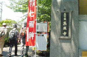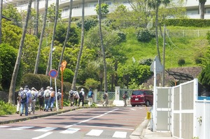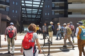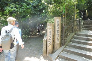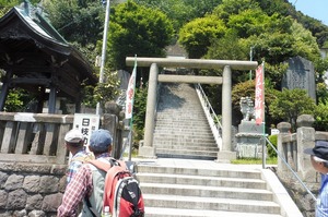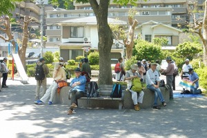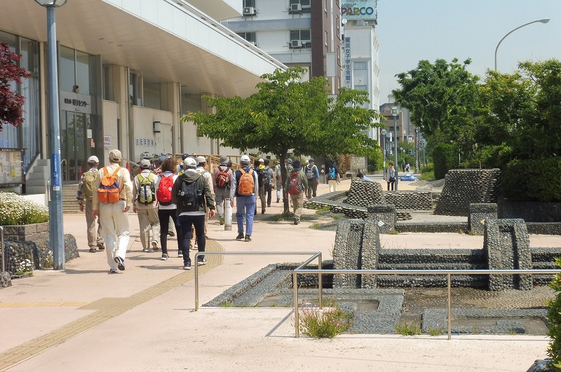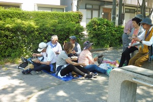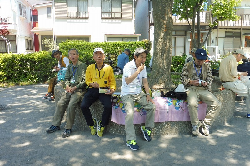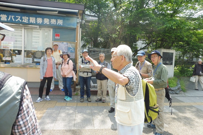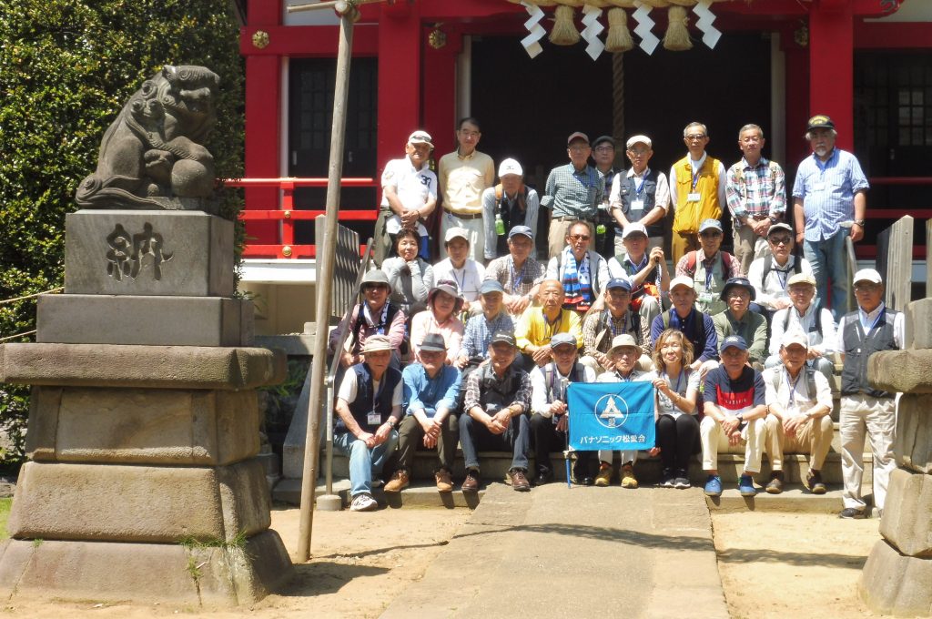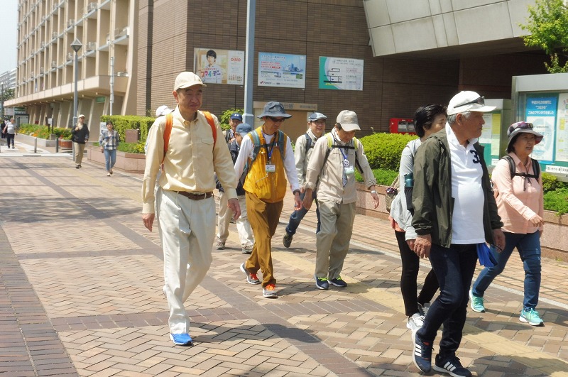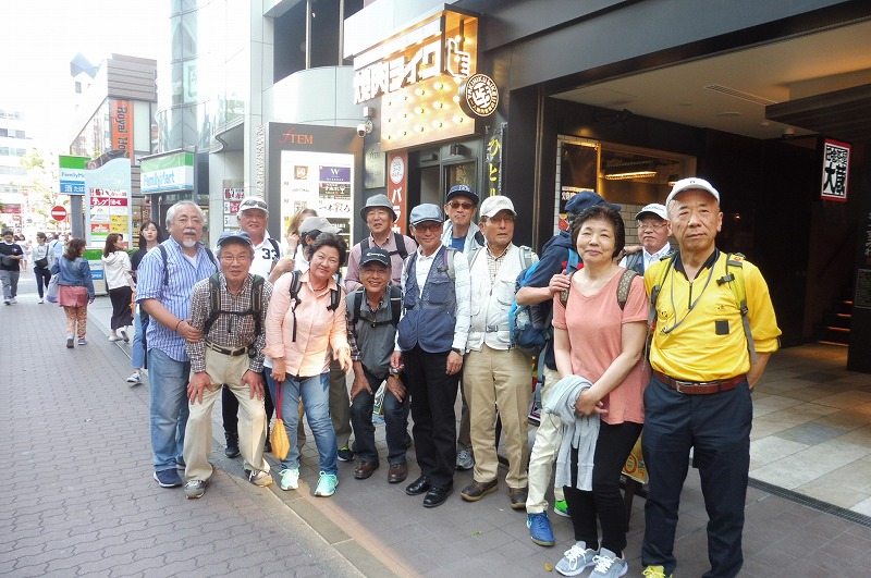 2019年5月11日(土)令和の最初のぶらり会は朝から晴れ。夏日の中、新会員1名を含めて34名の参加者で実施しました。JR根岸線磯子駅の改札前に午前10時集合。受付を済ませて西口の階段下のバス定期券売り場前に移動して世話役の挨拶、コース説明、新会員の自己紹介を聞いてスタート。歩道橋を渡り磯子産業道路沿いの散策路を根岸方向に歩き、途中の郵便局前の安藤橋の石碑を見て芦名橋公園で小休止。そして磯子旧道入り口信号を横断し、浜ストアの中を通り抜けて真照寺坂を登りステージ21マンションを眺め、磯子峰第二公園で小休止。水分を補給しての後、急坂を下り、金蔵院、日枝神社を通り磯子台へ再度登り、マルエツの前で小休止後、眼下の磯子の街を見て、有料のエレベーターで磯子駅入り口信号のところまで降り森二丁目公園で昼食と休憩。午後の歩きは、朝日不動滝、森浅間神社まで階段を登り、お参りの後に記念写真を撮り、久良岐公園に向けて汐見台の団地の坂道を歩き、久良岐公園の広場前で休憩。展示されてる市電の前で記念写真を撮り、公園内を散策し坂あり階段ありのアップダウンの道を京急線上大岡駅まで歩き、上大岡駅構内で世話役の挨拶を聞いて14時に無事終了しました。