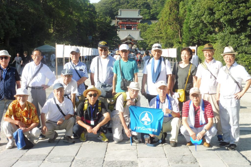 2019年8月8日(木)朝から夏の太陽が照り付ける中、17名の参加者で実施しました。JR横須賀線 鎌倉駅東口改札前に午後4時に集合。受付を済ませ、若宮大路の二ノ鳥居から段葛(だんかづら)を歩いて三ノ鳥居を通り、鶴岡八幡宮の太鼓橋前で今年で81回目になる参道に並ぶぼんぼり祭りを背景に記念写真を撮り、ここでぶらり会の団体行動から自由行動になりました。各自が多数のぼんぼりの鑑賞と舞殿での立秋祭の行事を見て、太鼓橋前に17時30分に参加者が集まり小町通を散策しながら鎌倉駅の近くの居酒屋に到着し、乾いた喉を潤しながら、あるこーる会を楽しみました。19時20分に解散し、無事終了しました。