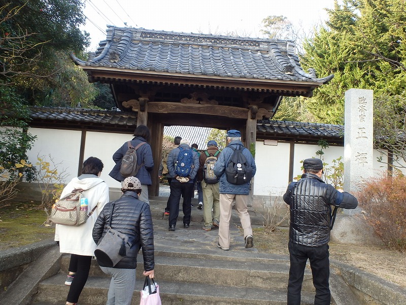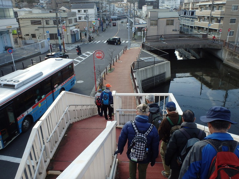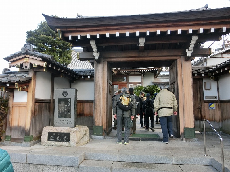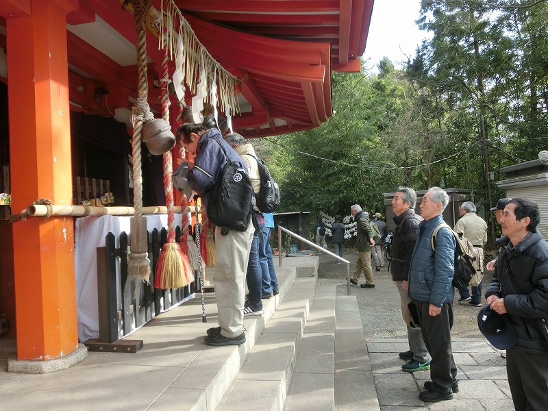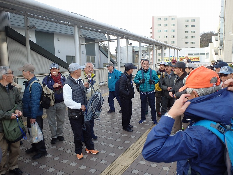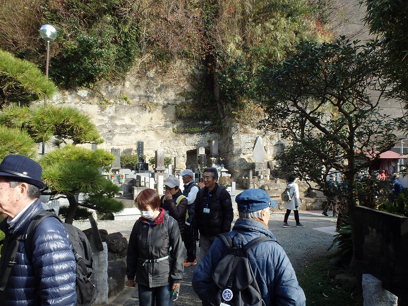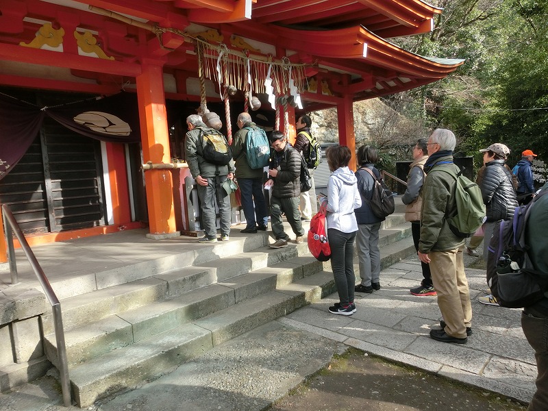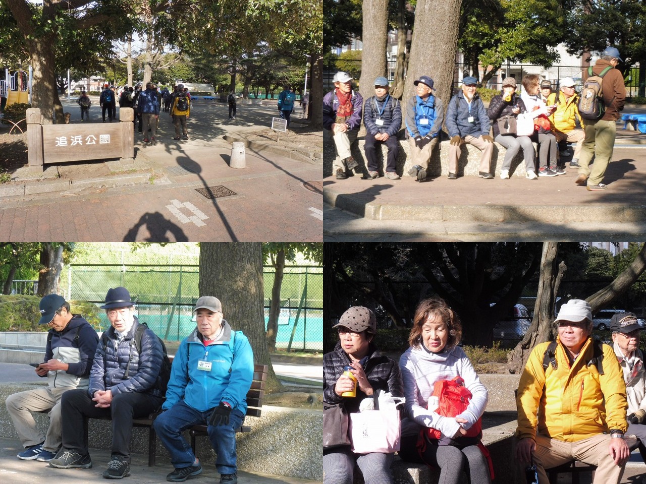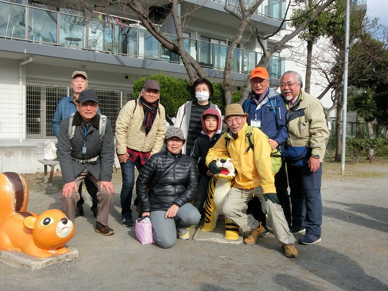 2020年(令和二年)の初歩きは新春恒例の七福神めぐりシリーズで追浜七福神巡りを好天の中、1月4日(土)45名の大勢の参加者で実施しました。京急線追浜駅の改札前で受付を済ませ、駅入り口の二階デッキに移動し集合。世話役の年頭の挨拶、コース説明を聞いてスタート。駅近くの雷神社、法福治(金毘羅天)、自得寺(大黒天)、正光寺(福禄寿)、良心寺(布袋尊)を巡り、コンビニ横から裏道に入り小さな平六トンネルを抜けて浦郷小学校の横を通り、観音寺(寿老人)を巡り急坂と階段を下り、浦郷の京急ストアで昼食を購入。深浦ボートパーク隣りの浦郷公園で恒例のお神酒を全員で頂きました。昼食と休憩の後に記念写真を撮り、能永寺(弁財天)、独園寺(恵比寿)、正禅寺(毘沙門天)と巡り、追浜公園で休憩。出発前に記念写真を撮り、追浜駅に向けて正月休みの商店街を通り、出発点の追浜駅に到着。世話役の挨拶を聞いて14時に解散、無事終了しました。