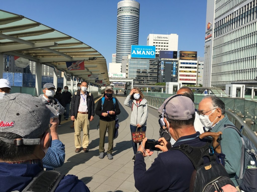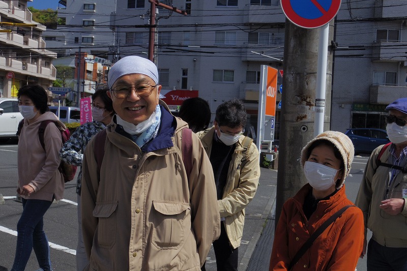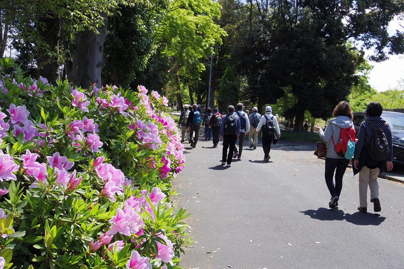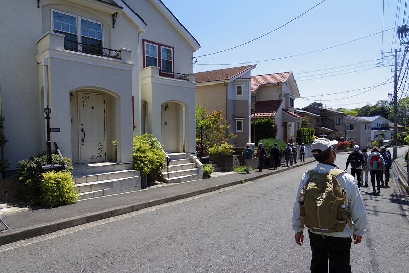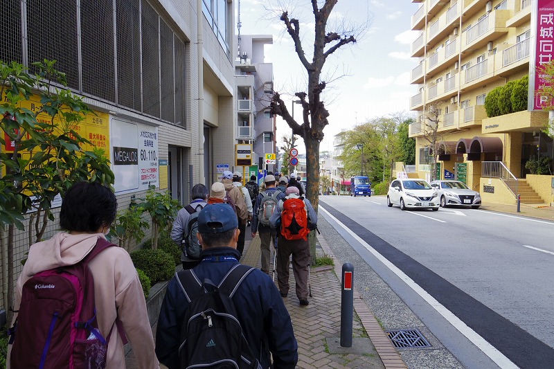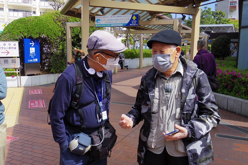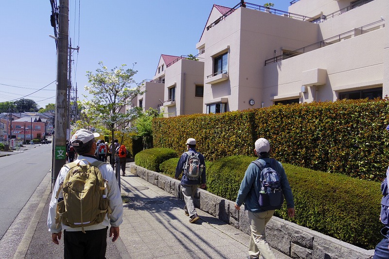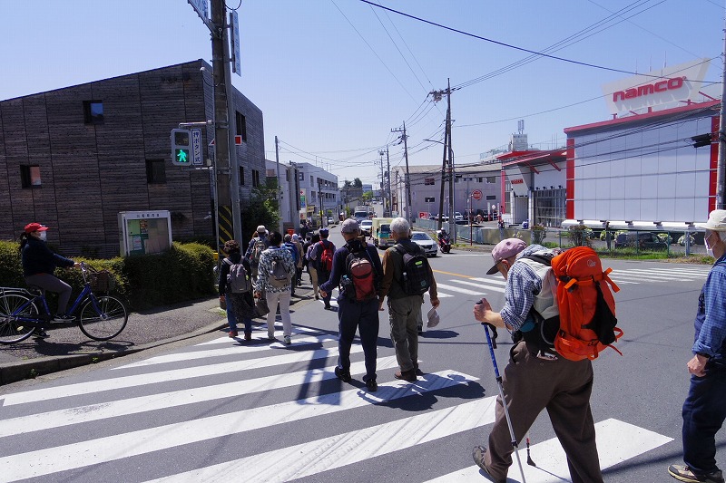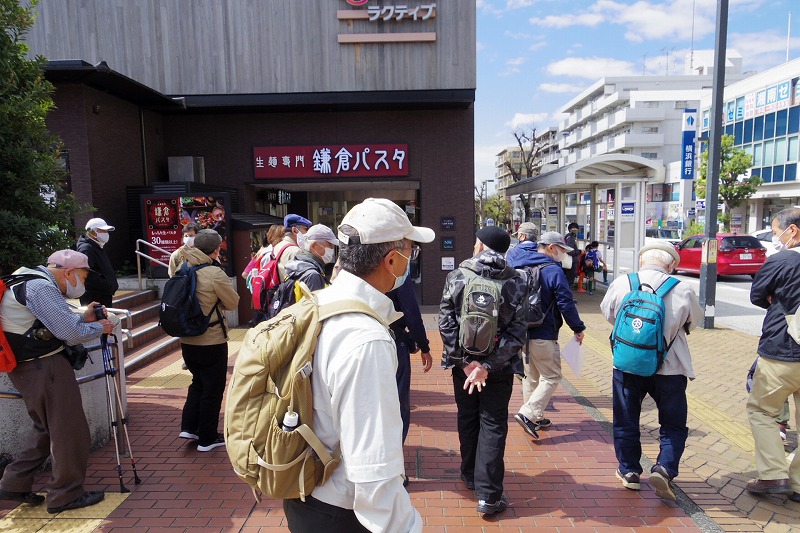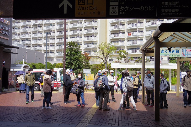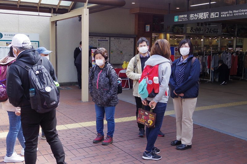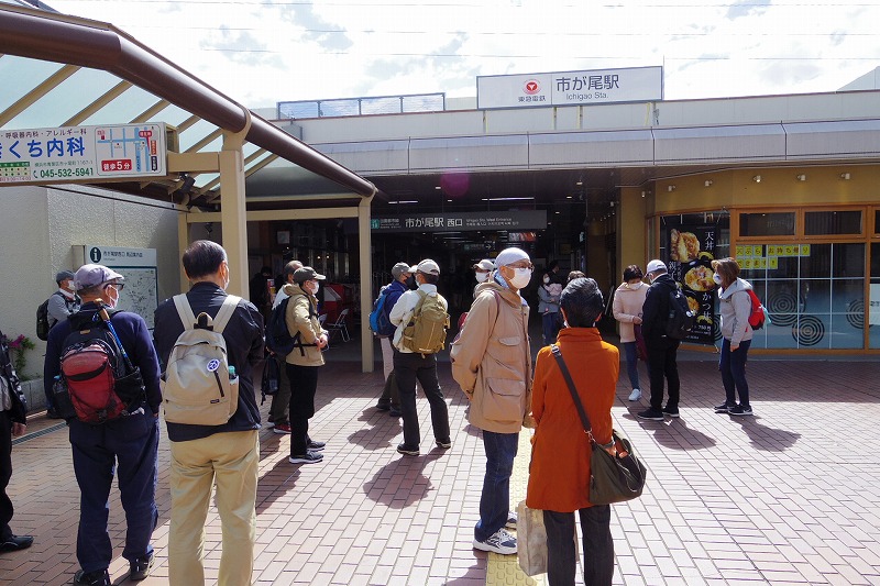 田園都市線の市が尾駅改札前に10時集合・受付を済ませて駅前広場で出発待ち。混雑を避けて駅前から移動し広場で世話役の挨拶、新会員の自己紹介を聞いてスタート。