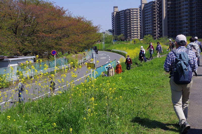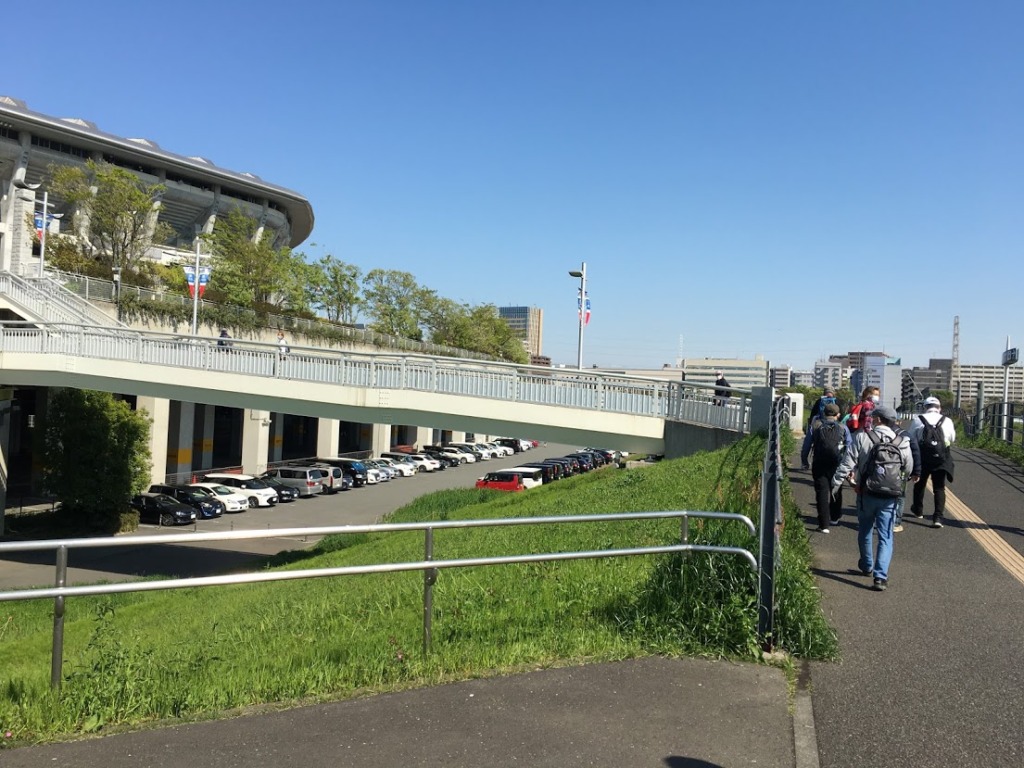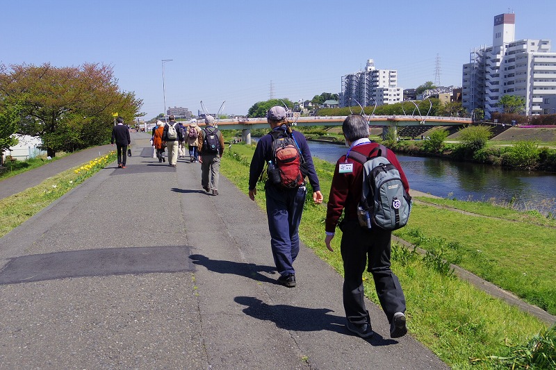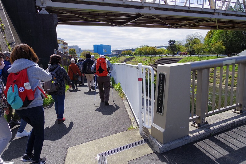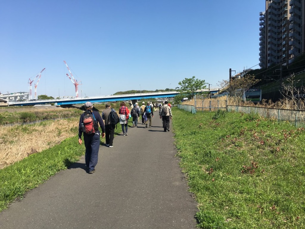再び鶴見川の遊歩道を歩いて、小机大橋、多目的遊水地交差点を通り日産スタジアムで休憩。西ゲート橋を渡りスタジアム通りを経て新横浜駅まで歩いた。ここで世話宅の挨拶と次回のコース説明を聞いて15時に解散。無事終了した。