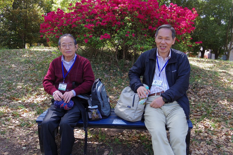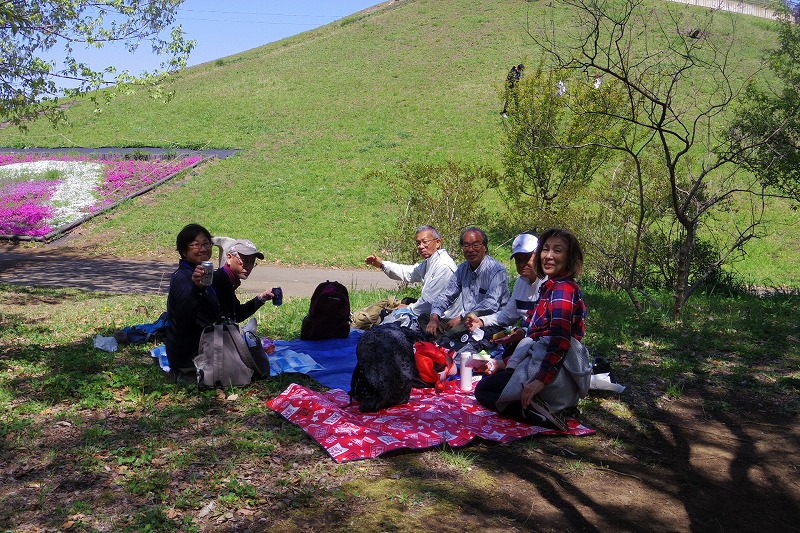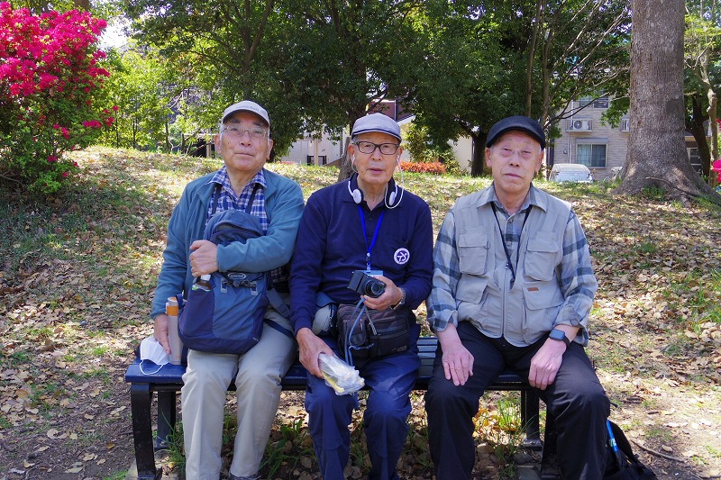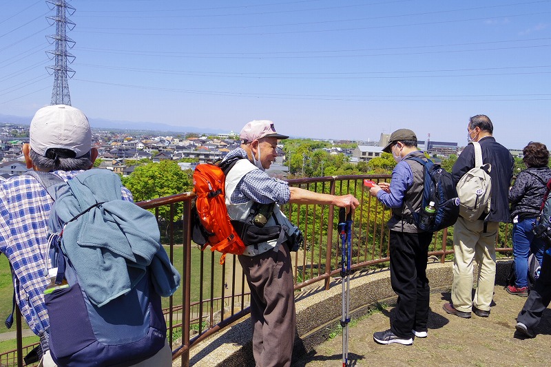 公園の川和富士に登り360度の景観と遠く富士山を眺めました。ここで記念写真を撮り早めの昼食と休憩。