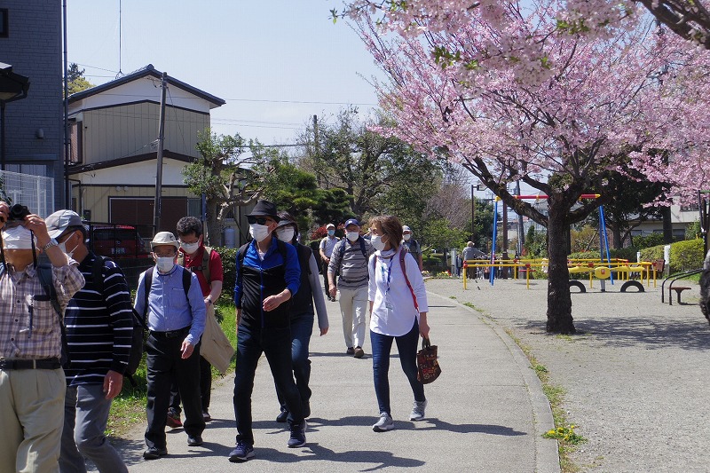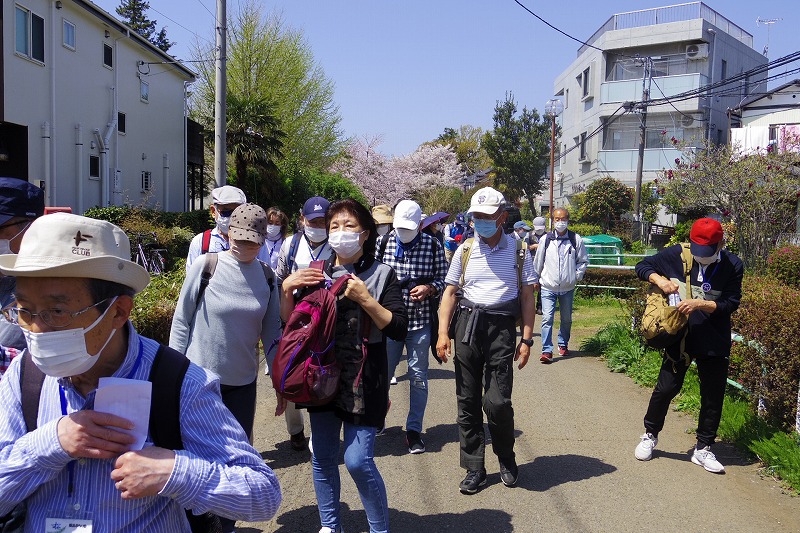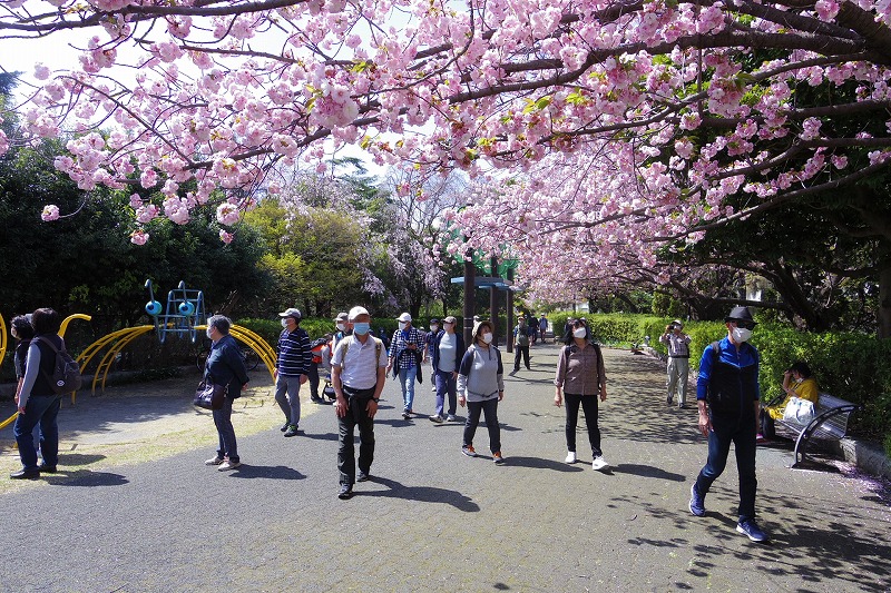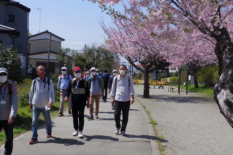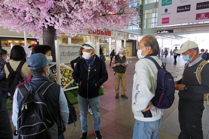 2022(令和4)年4月9日(土)快晴の朝に35名の参加者で実施しました。小田急線の相模大野駅改札前広場に10時集合、受付を済ませ相模大野中央公園に移動しました。世話役よりぶらり会の今後の方針説明と歩くコースを聞いてスタート。