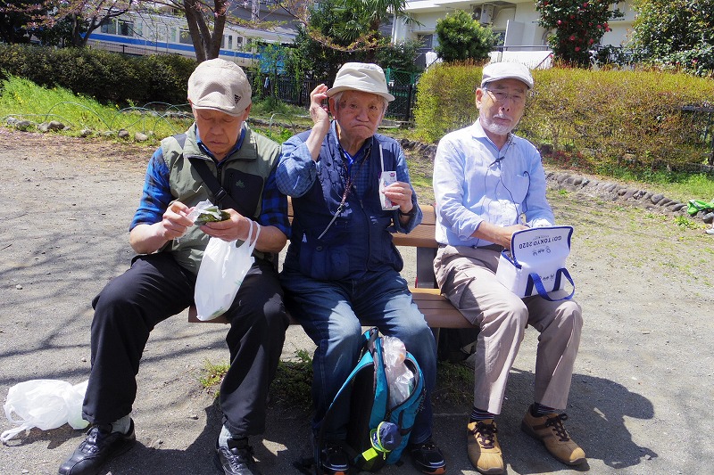 相模女子大の脇道を通り相模緑道緑地を歩き子供センター入り口の信号から町田厚木線を歩き米軍住宅横を通り横浜水道道の緑道に到着。ここから整備された緑道をあるき続けました。東林間駅踏切脇の林間白笹公園で昼食と休憩。