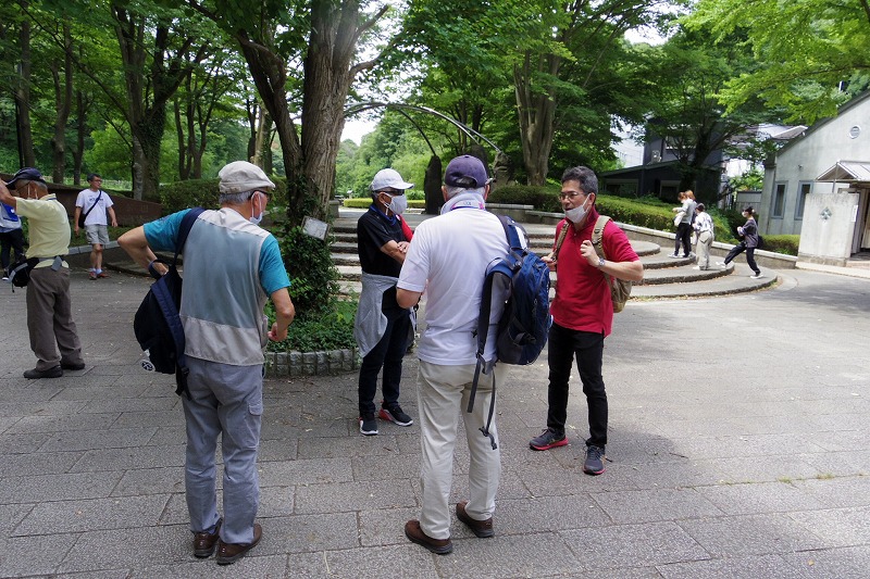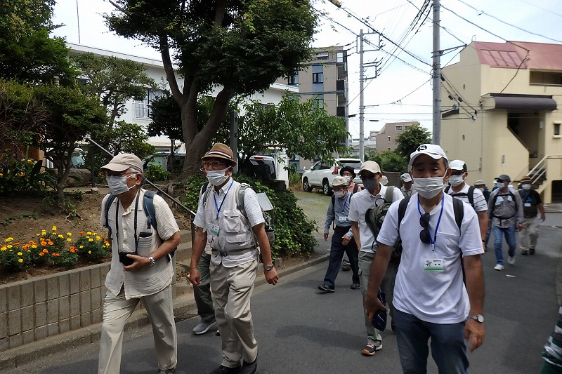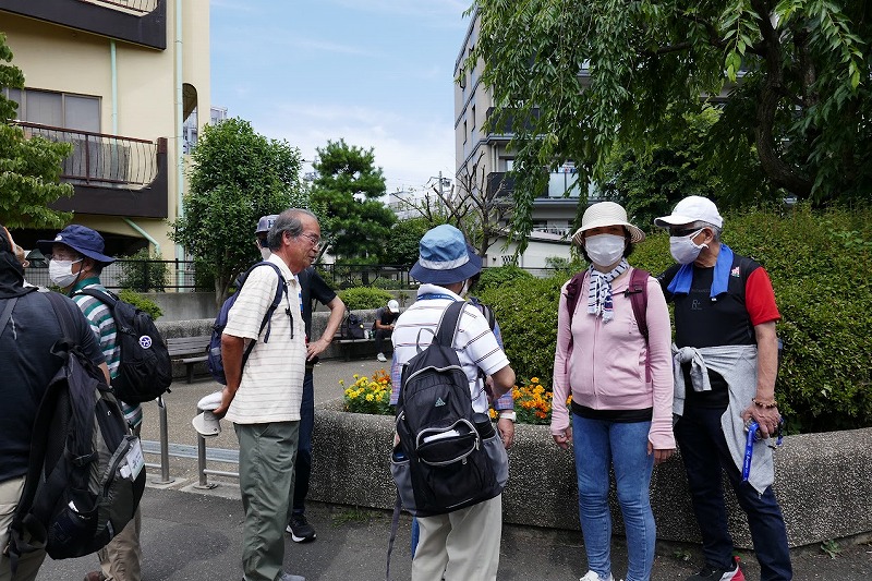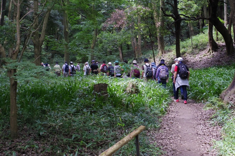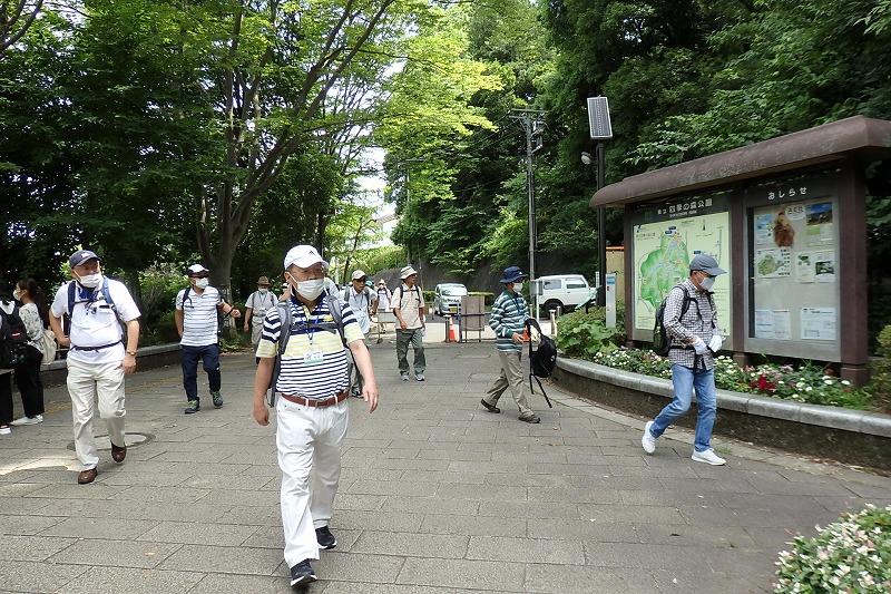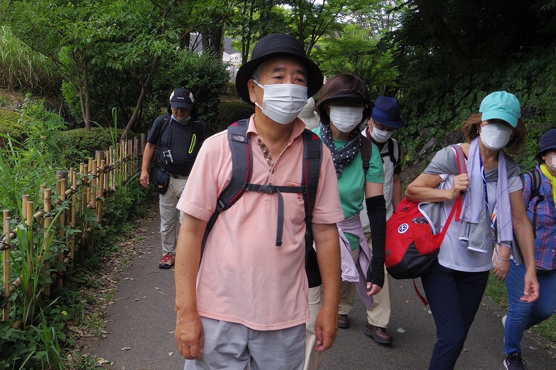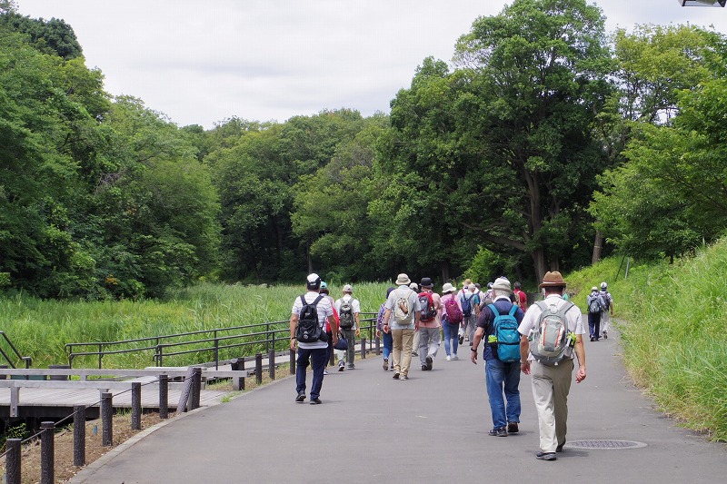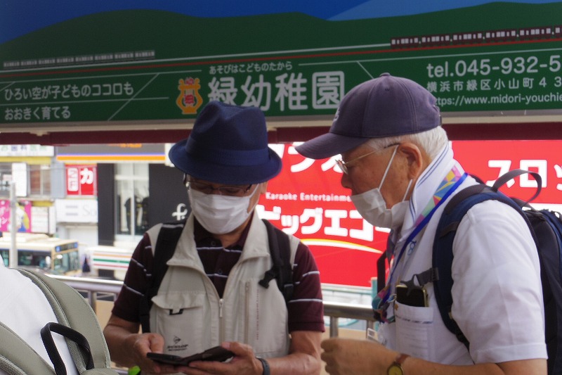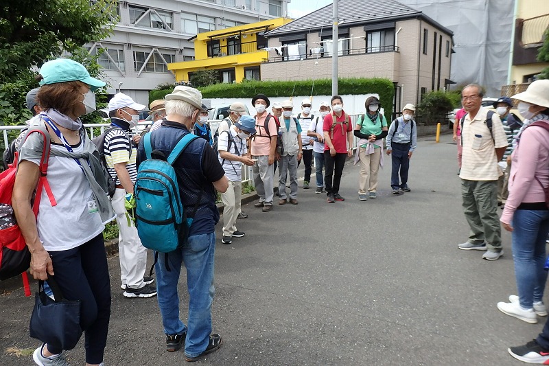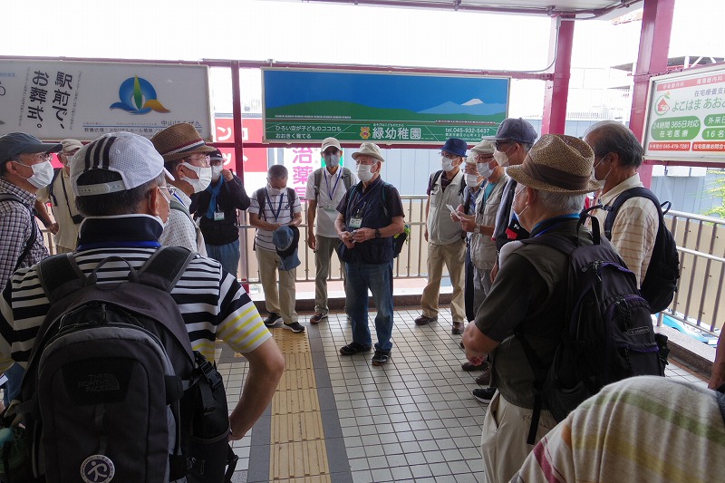 JR横浜線の中山駅改札前に10時集合。受付を済ませて南口階段上に移動し、世話役の挨拶のあとにスタート。中山商店街を歩き四季の森公園プロムナードを歩き四季の森公園の北口広場の到着。