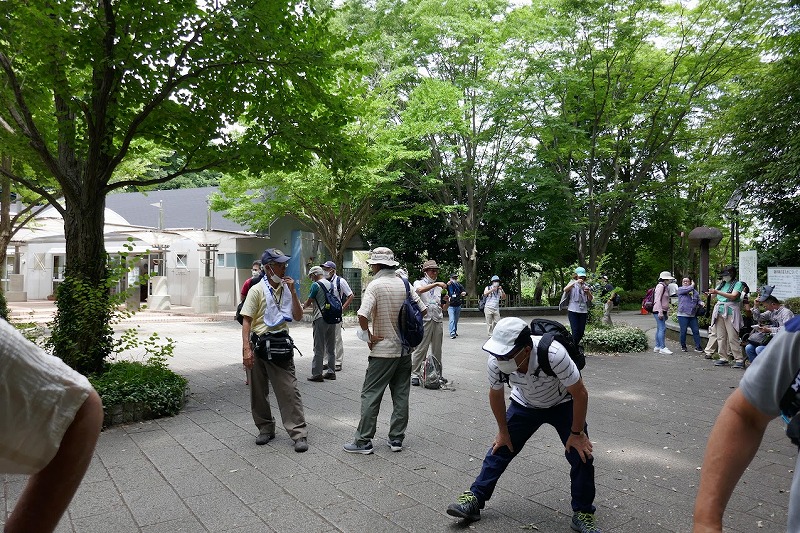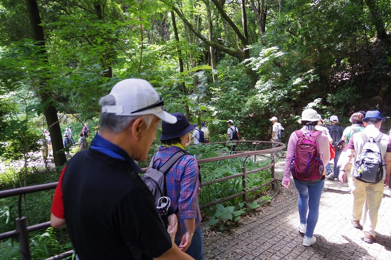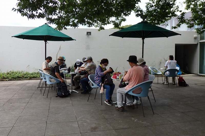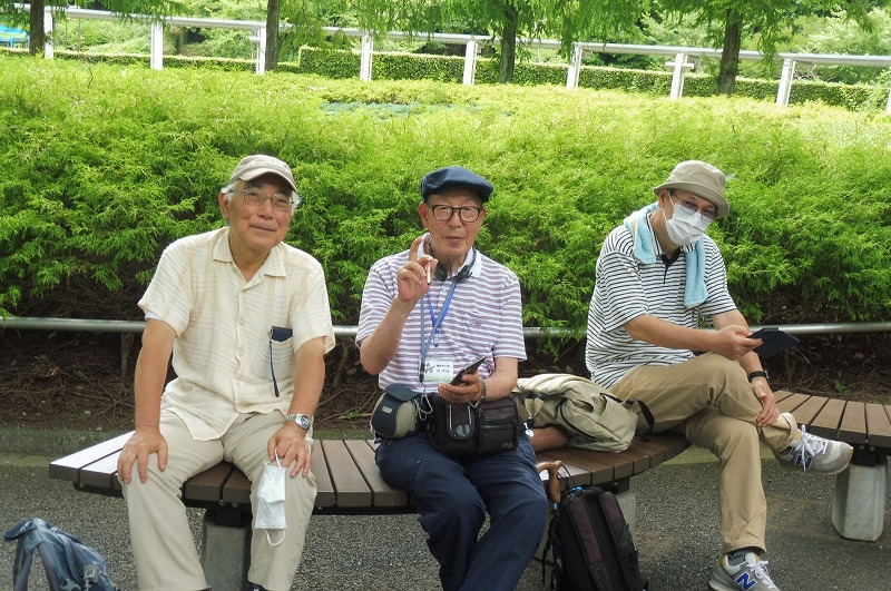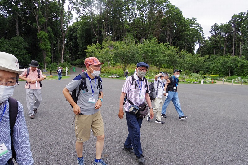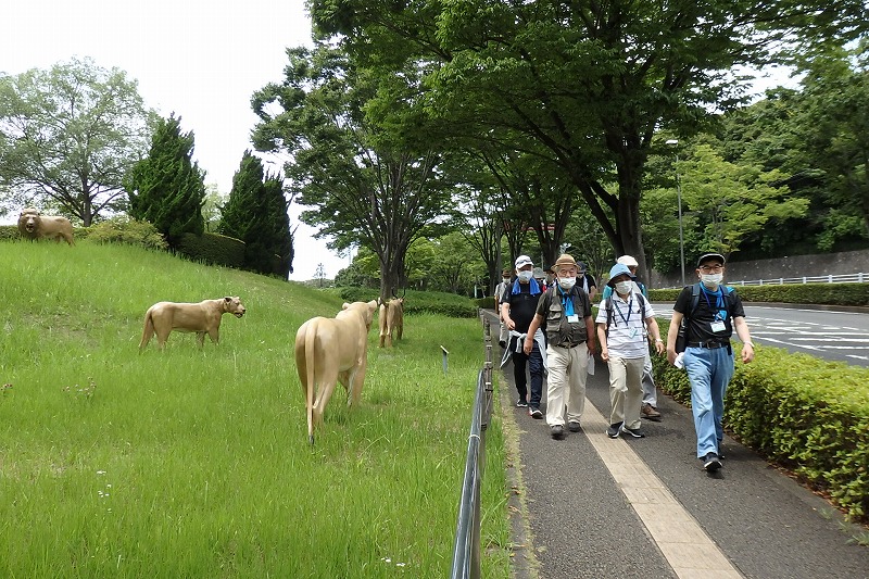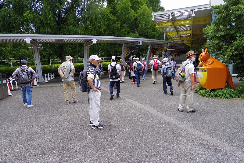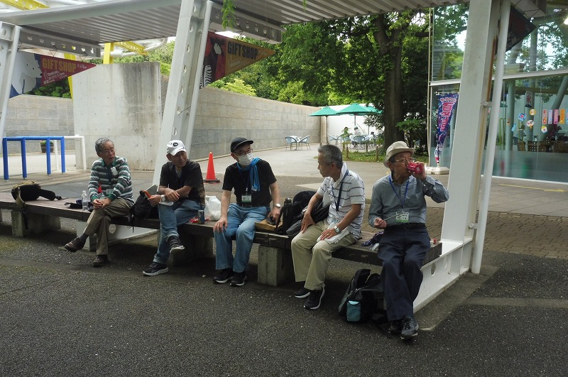 ここで少し休憩してからじゃぶじゃぶ池の前を通り公園の外周を散策し、公園の西口広場から西ひかりが丘団地の外周を通りコンビニ前で休憩して里山ガーデンを歩きトレイルアドベンチャー前の広場で休憩。記念写真を撮りズーラシア動物園の入口前のバスロータリー横休憩所で休憩と昼食。
