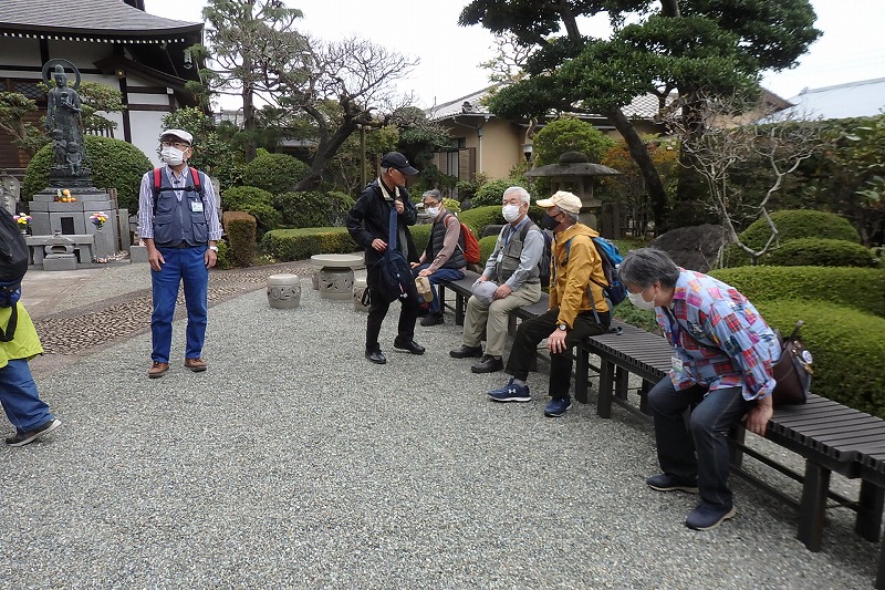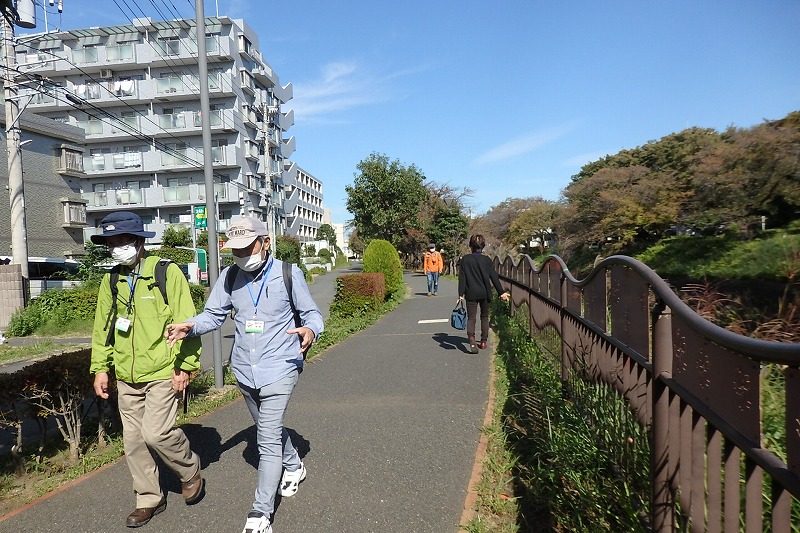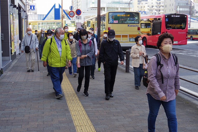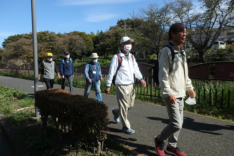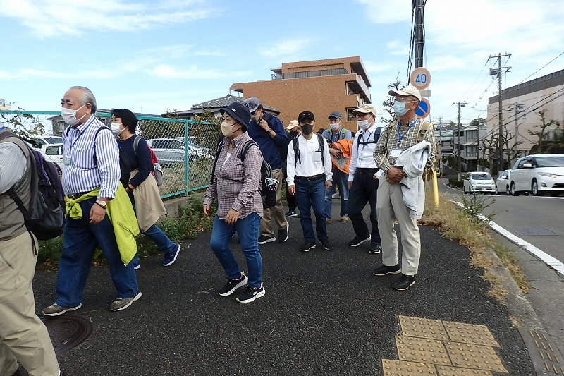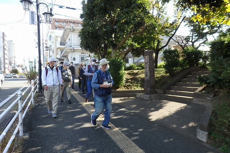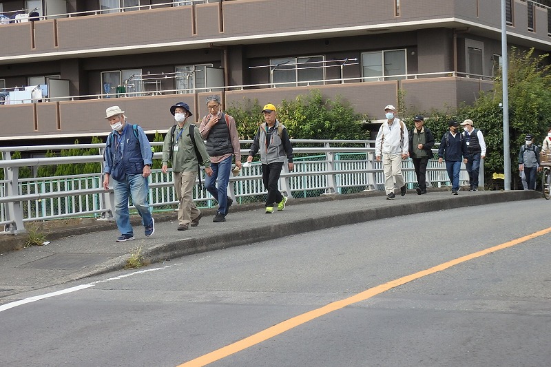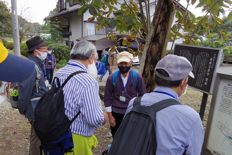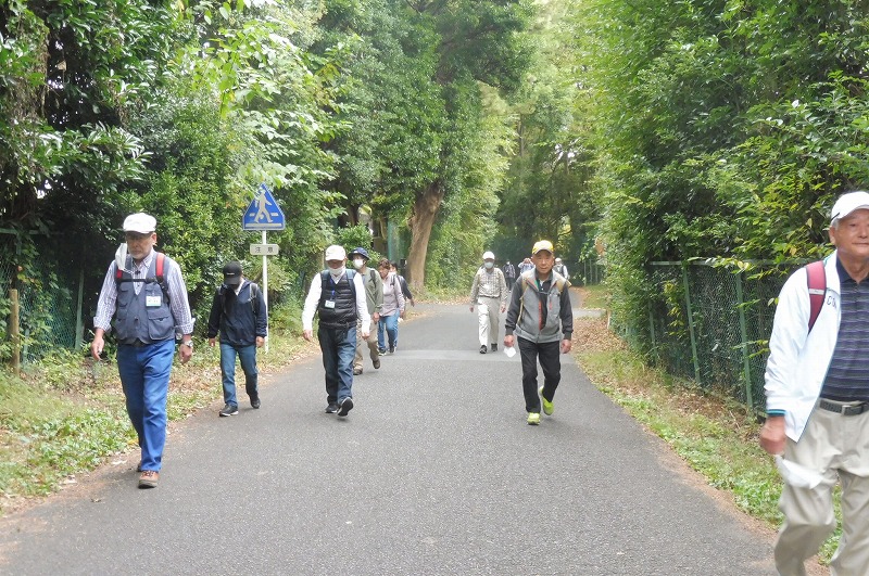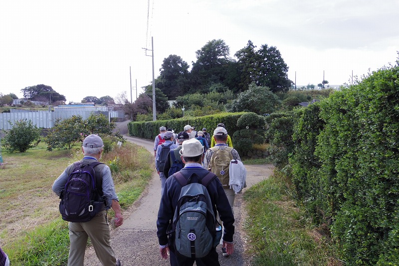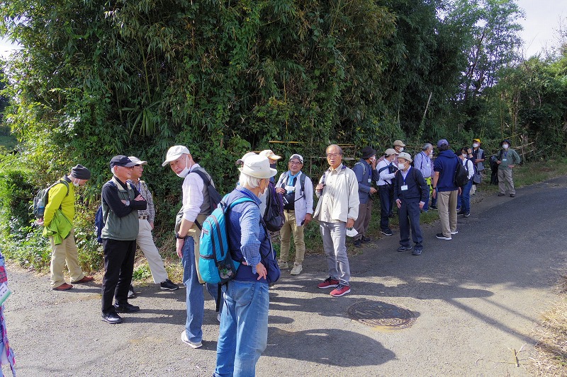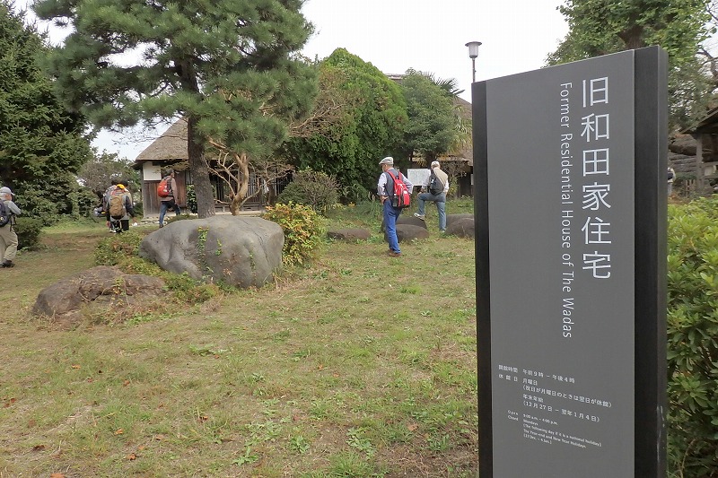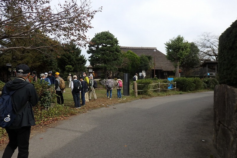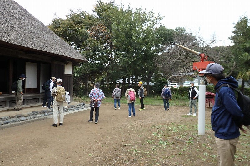午後の出発前にメインエントランス前で記念写真を撮り、茅ヶ崎里山公園入り口で4名がバスで帰宅。28名が歩きを続けました。文教大学入口交差点、湘南さくら病院を過ぎて旧和田家住宅を見学。浄見寺に参拝。スリーハンドレットクラブ・ゴルフ場の中を通り新湘南バイパスの下を通り、JR相模線の踏切を越え、小出県道を茅ヶ崎駅に向かって歩き一里塚前を通りJR茅ヶ崎駅に到着。