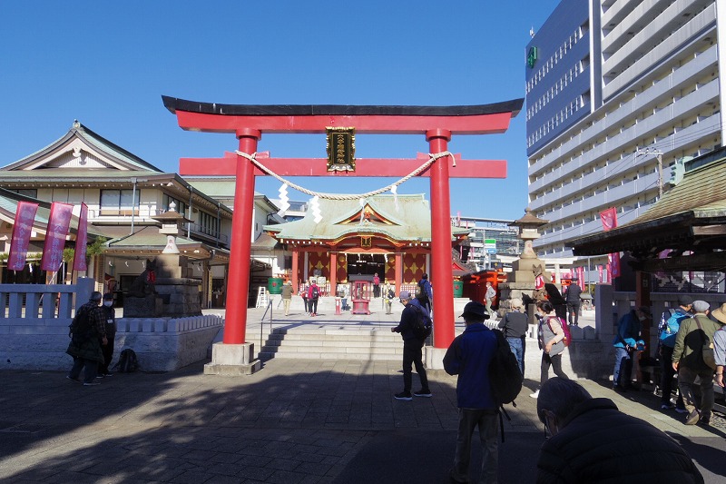 - 弁天橋鳥居 記念写真(後ろに見えるのは、建築中のHANEDA INNOVATION CITY)