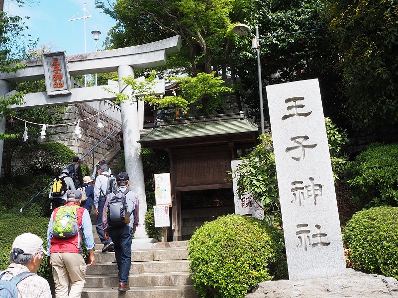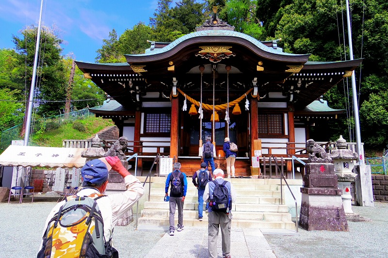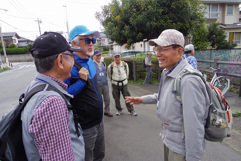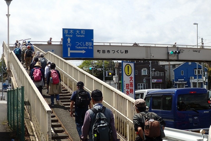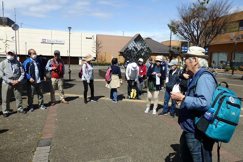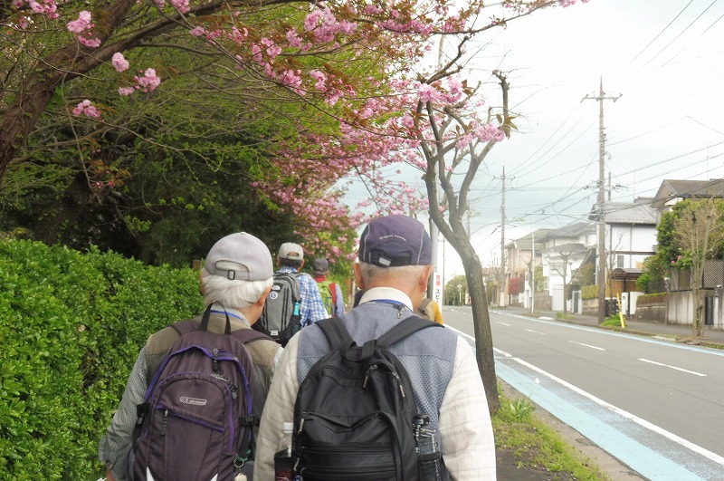 田園都市線つくし野駅改札前に10時集合、受付を済ませ駅前の広場で世話役の挨拶の後に恩田川の桜が散ったために八重桜の道にコース変更を伝えスタートした。森村学園、産能短期大学長津田グランド前から長津田宿市民の森を通り金毘羅神社、戦没者慰霊塔(御野立之趾)田奈村忠魂碑、皇太子殿下御野立之跡を見学して長津田小学校前から旧大山街道に入り、南長津田団地前を通り王子神社に参拝。歩道橋を渡り福原寺で休憩。