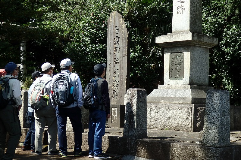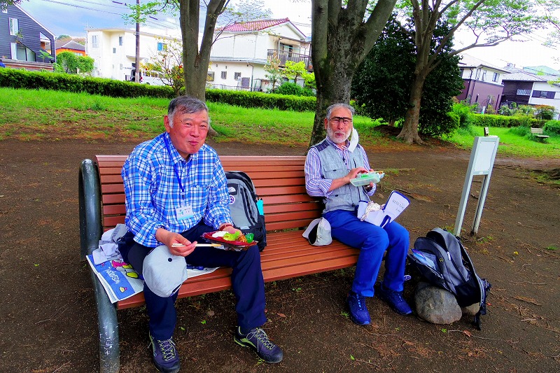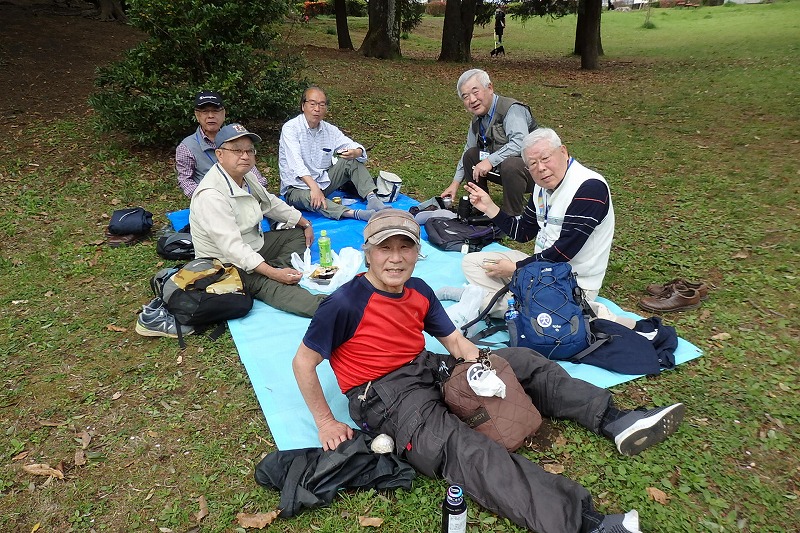 寺裏の天王鶯林を歩き天王社参拝後に急階段の参道を下りフィールドアスレチック横浜つくし野コース横を通り国道246号線の歩道橋を渡り住宅地の中にあるつくし野セントラルパークで昼食と休憩。ここで記念写真を撮り、すずかけ台駅前を通り南町田グランベリーパークに到着。