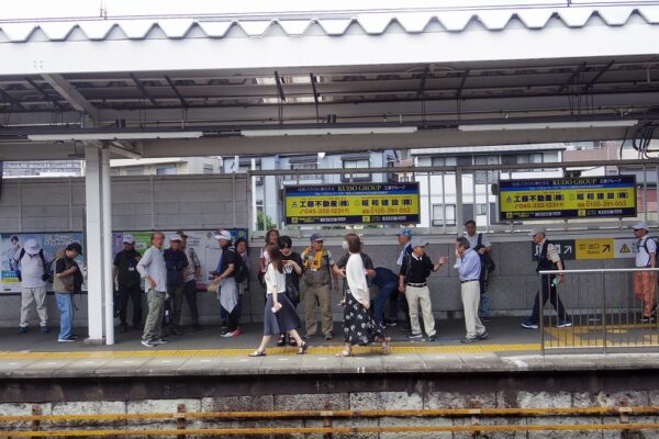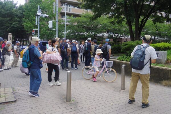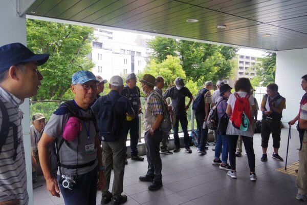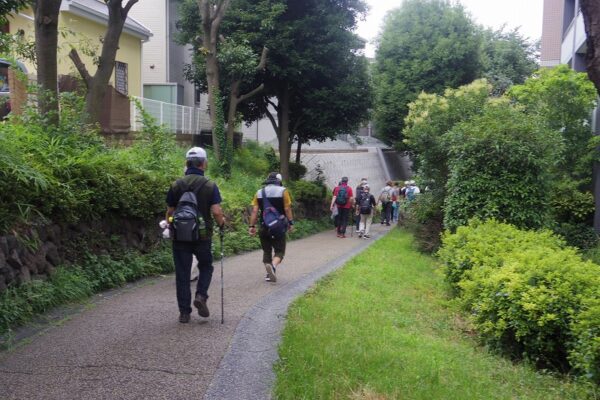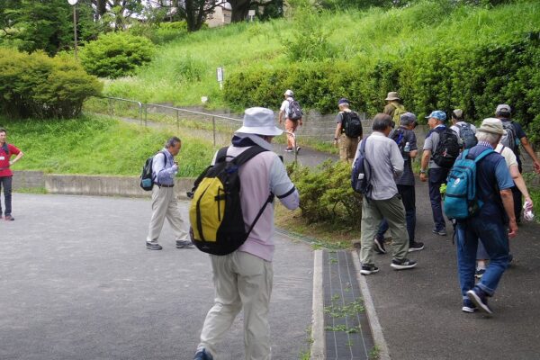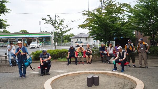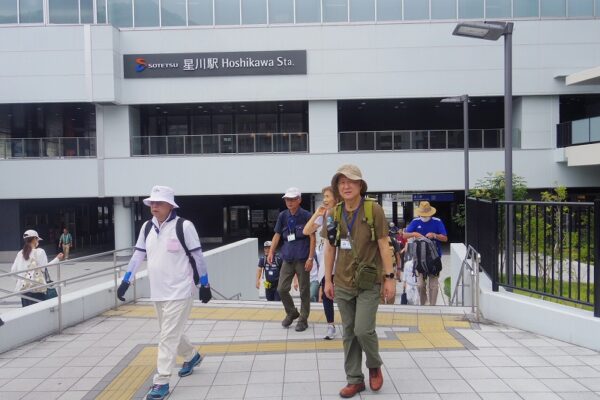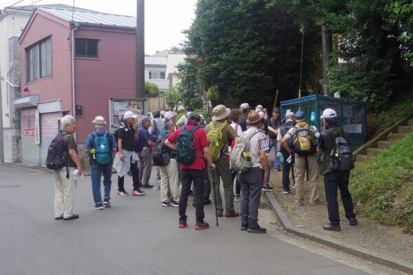 相鉄線星川駅に午前10時集合。受付を済ませ改札口横の広場で世話役の挨拶、コース説明、新会員の自己紹介を聞いて水分補給後にスタート。