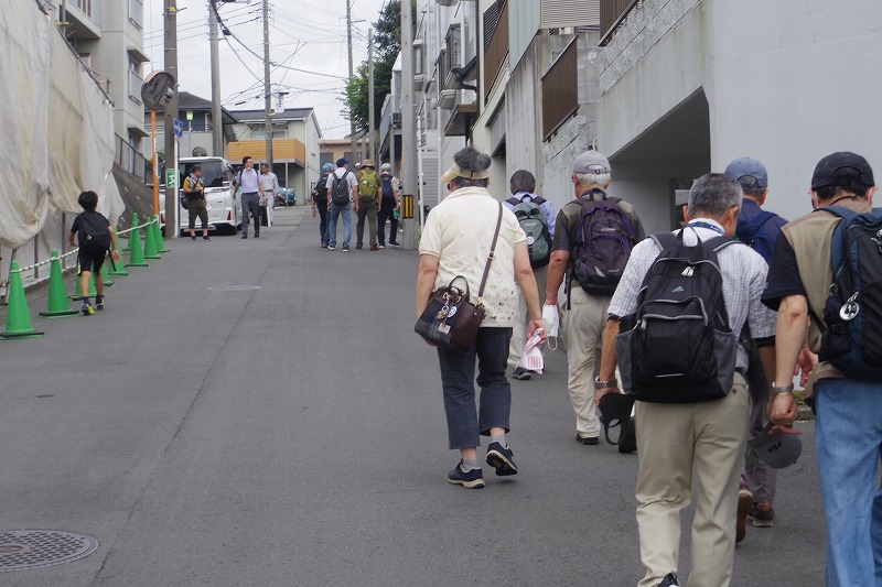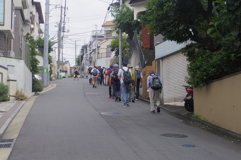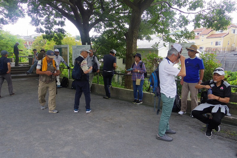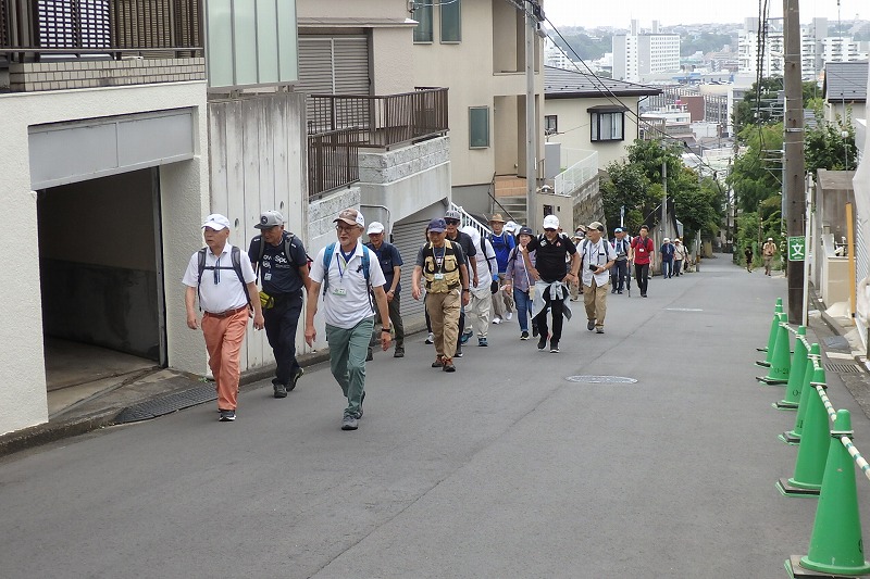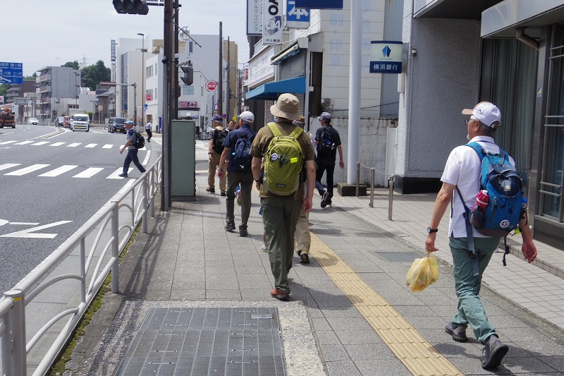 相鉄線星川駅に午前10時集合。受付を済ませ改札口横の広場で世話役の挨拶、コース説明、新会員の自己紹介を聞いて水分補給後にスタート。