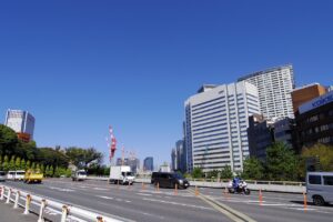 - 新八ツ山橋 先の緑は 旧岩崎家高輪本邸