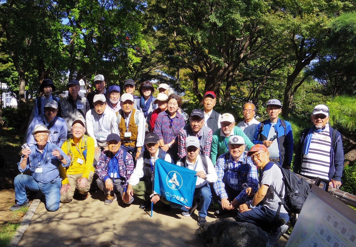 京急線北品川駅改札前に午前10時集合。受付を済ませ八ツ山公園に移動して世話役の挨拶、コース説明を聞いてスタート。
