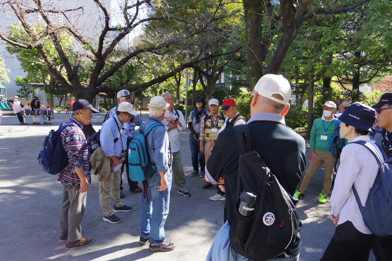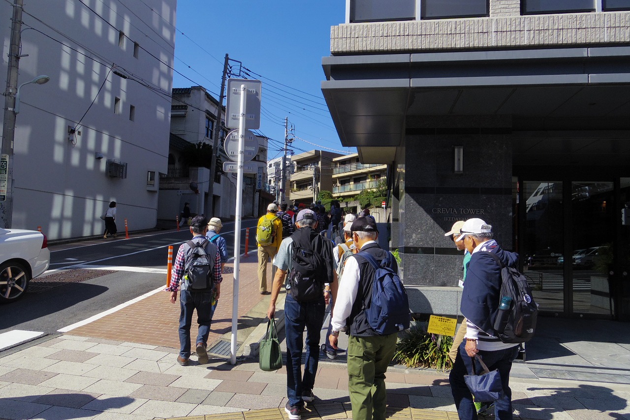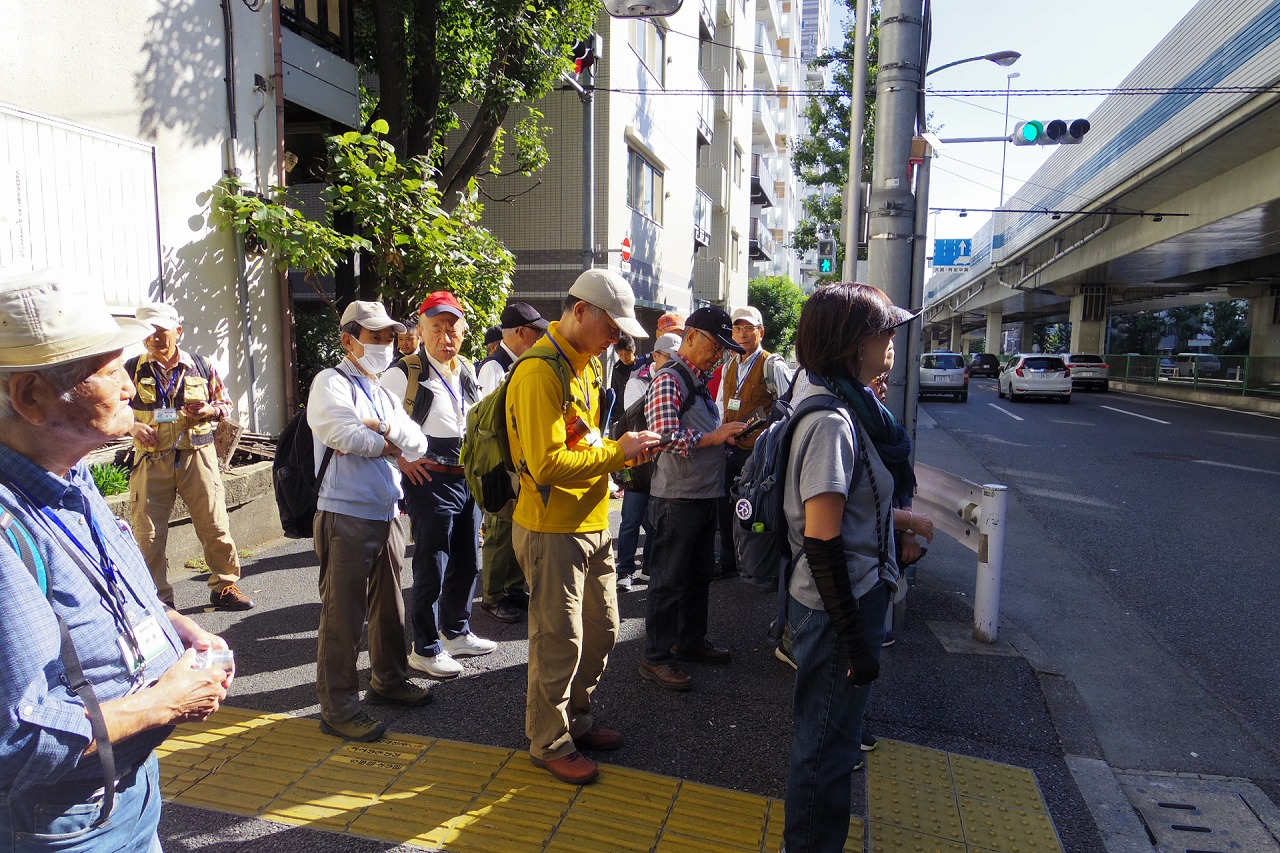 京急線北品川駅改札前に午前10時集合。受付を済ませ八ツ山公園に移動して世話役の挨拶、コース説明を聞いてスタート。