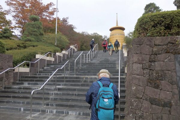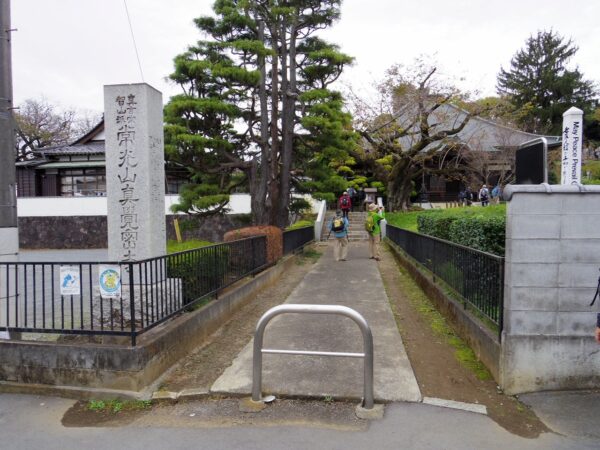 フリーマーケット開催中の西口商店街、西放射線ユーロード、甲州街道を通り金剛院に参拝。JR中央線沿いから産千代稲荷神社にある大久保石見守長安陣屋跡に参拝。小休止して第七小学校前から八王子産業会のフリーマーケットが開催されてる富士見公園を通り抜けて兜卒山 廣園寺に参拝。八王子市立小田小学校前を通り万葉公園で昼食と休憩。