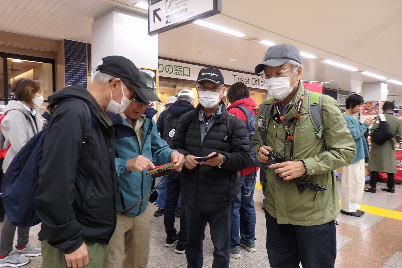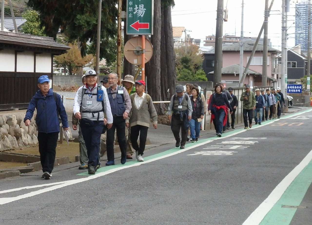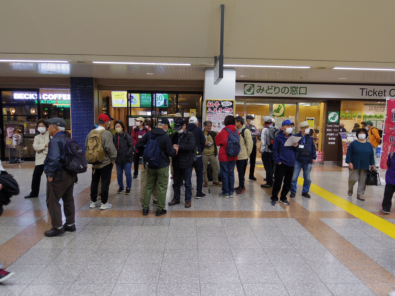 JR八王子駅改札前に午前10時に集合、受付を済ませ北口出口前で世話役の挨拶、コース説明を聞いてスタート。
