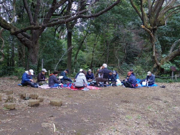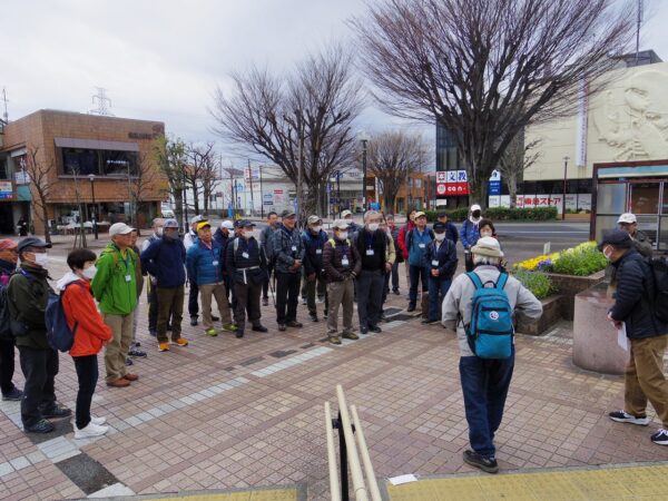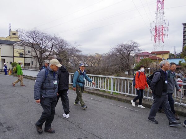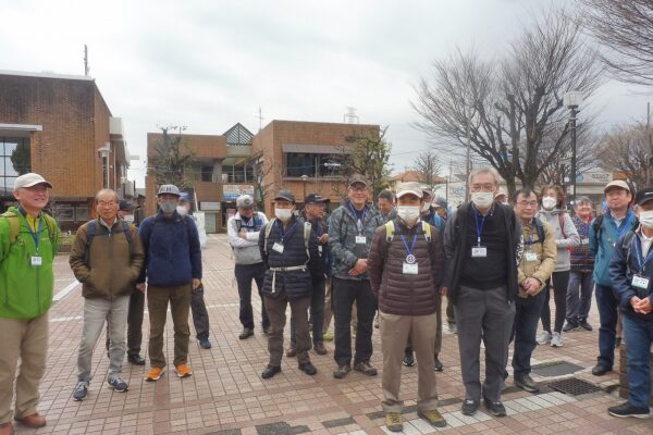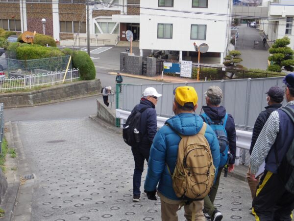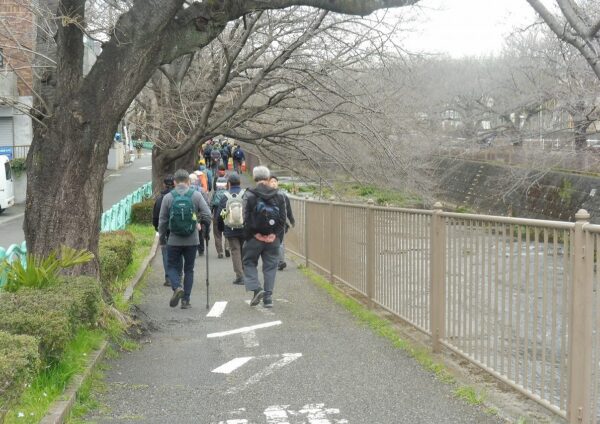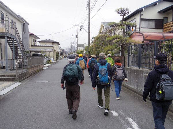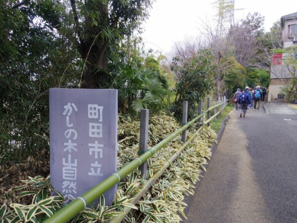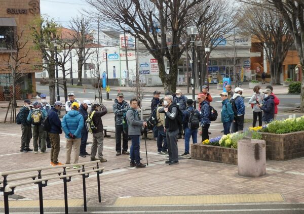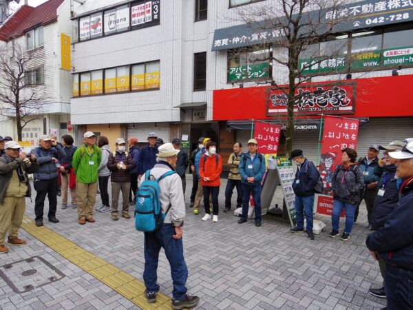 田園都市線つくし野駅改札前で受付を済ませ10時まで駅前広場で談笑。世話役から「残念ながら桜の開花が遅れてるので一部コースを変更します」の連絡を聞いてスタート。