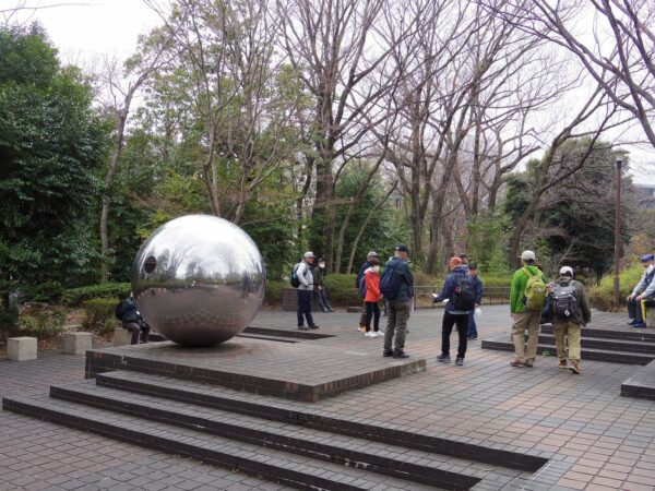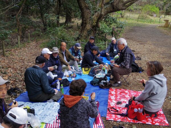 成瀬の住宅地を歩き、かしのき山公園まで登り広場で昼食と休憩を済ませ管理センター前で記念写真を撮り、公園前の坂道を下り田市南大谷の住宅地を歩き町田駅を目指す。町田第二中学脇を歩き芹沢公園に到着。ここで開花した一本のサトザクラに出会う。公園内を散策し長い階段を登り大きな鉄球前で休憩。公園を出て原町田大通りから町田駅前商店街の入口で集合。世話役から次回の案内を聞いて13時15分に解散。いつもの店であるこーる会を行い15時30分に解散し無事終了した。