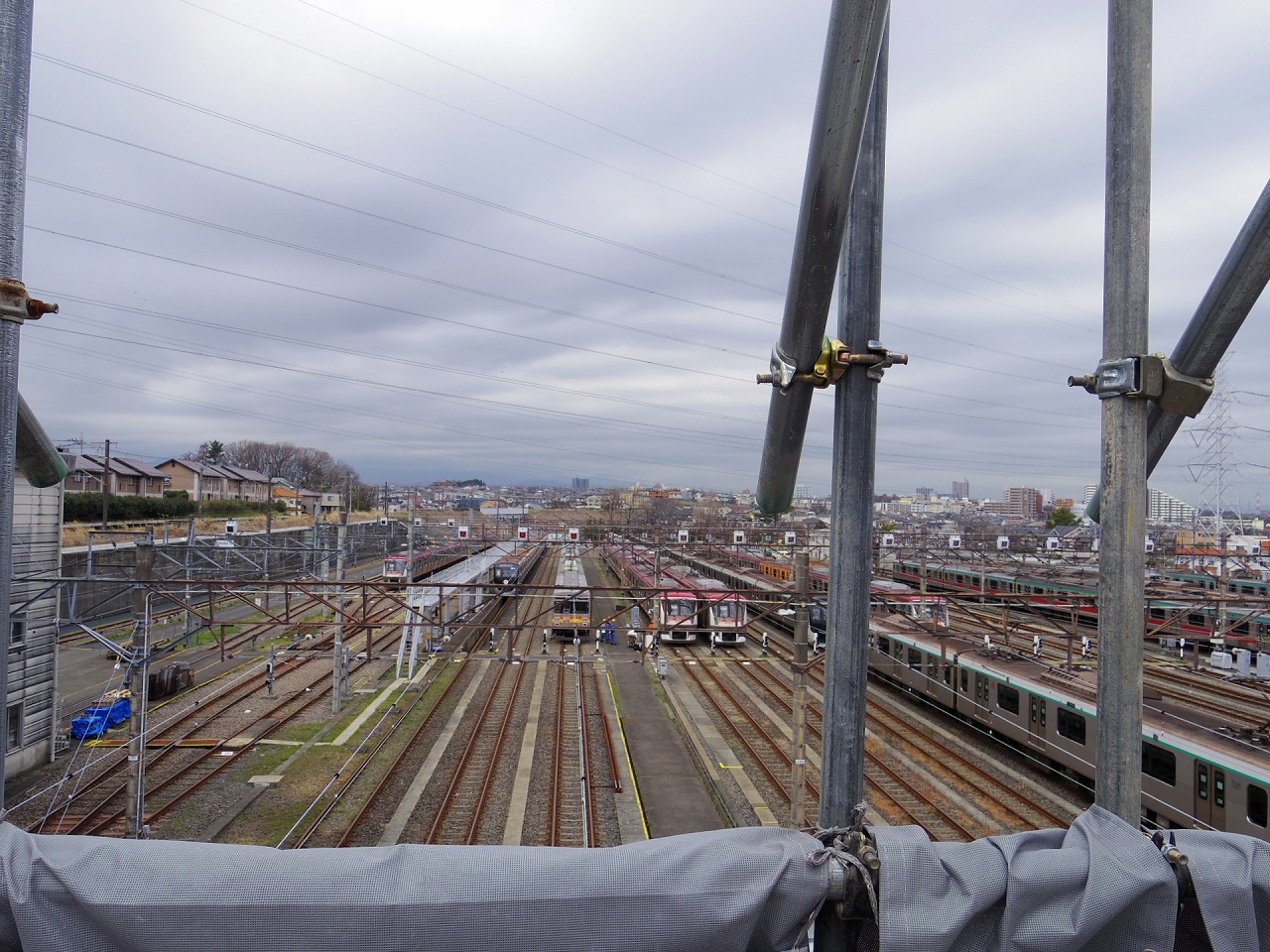 東急電鉄 長津田検車区の工事中の渡線橋を渡り成瀬クリーンセンタ前から堂之坂公苑で休憩。その後、恩田川遊歩道を歩く。桜の開花はなく蕾も小さいので残念な気持ちで恩田川沿いを歩いた。