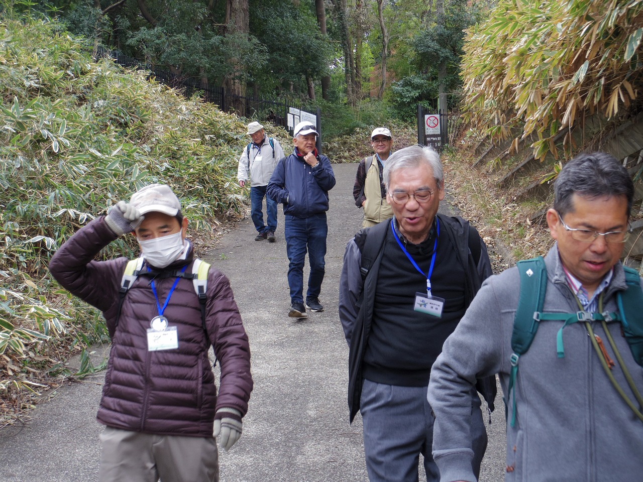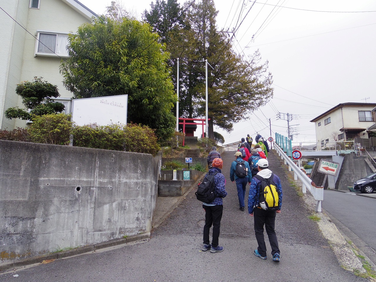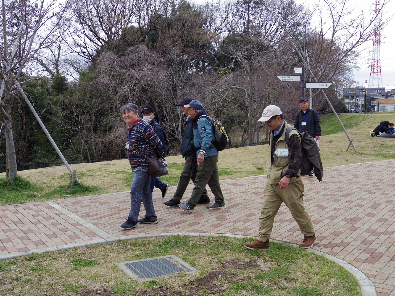 田園都市線つくし野駅改札前で受付を済ませ10時まで駅前広場で談笑。世話役から「残念ながら桜の開花が遅れてるので一部コースを変更します」の連絡を聞いてスタート。