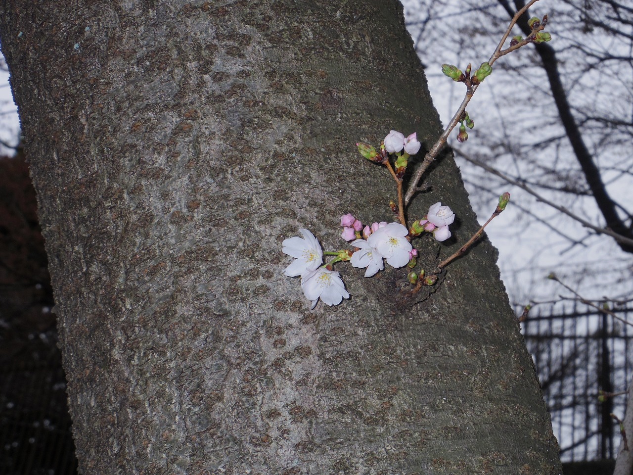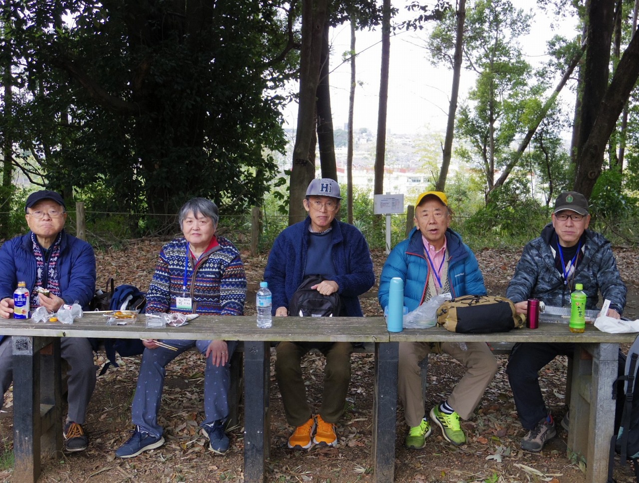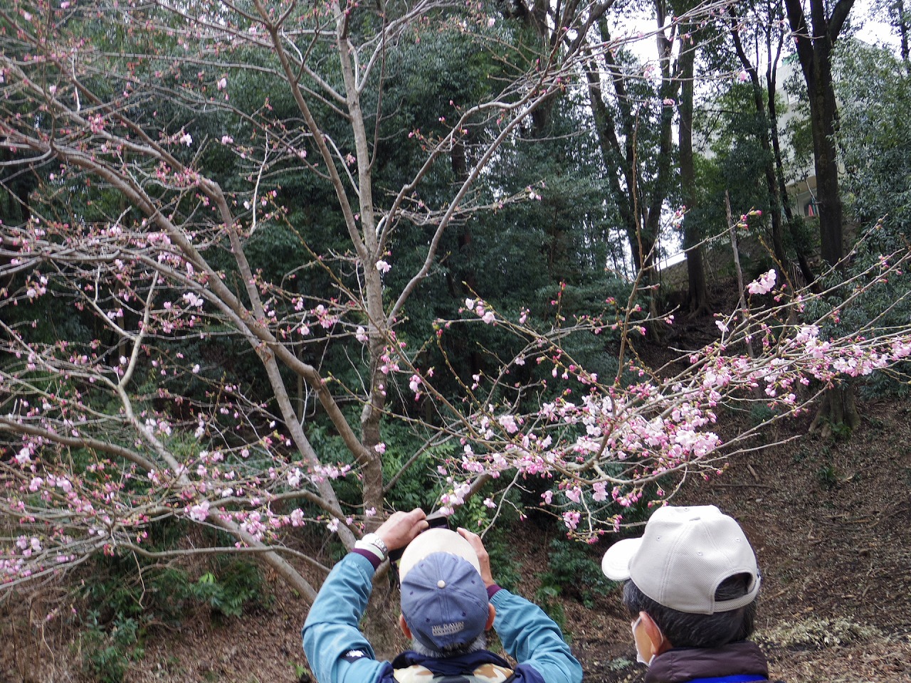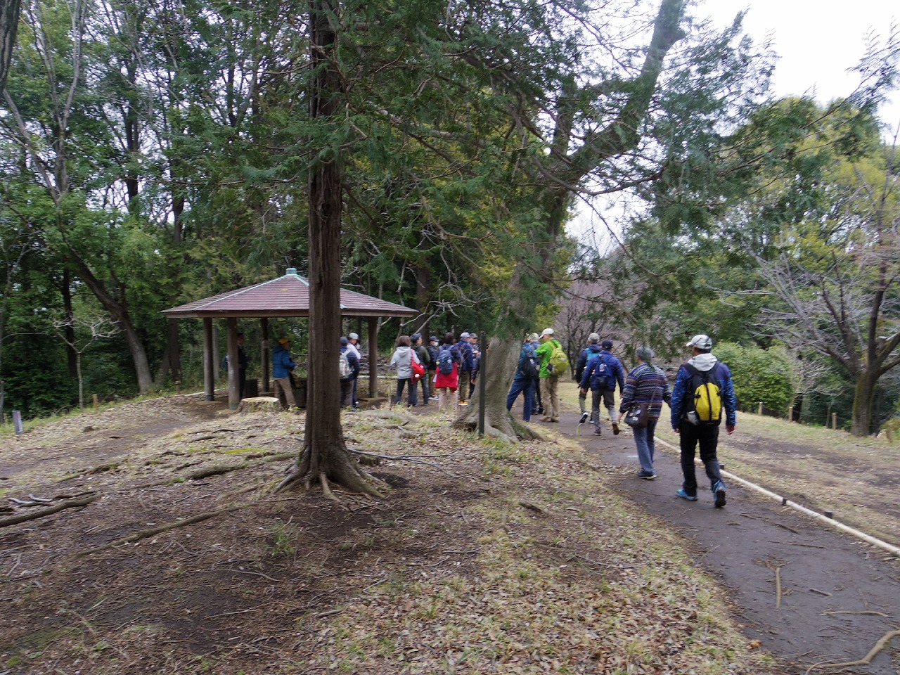 田園都市線つくし野駅改札前で受付を済ませ10時まで駅前広場で談笑。世話役から「残念ながら桜の開花が遅れてるので一部コースを変更します」の連絡を聞いてスタート。