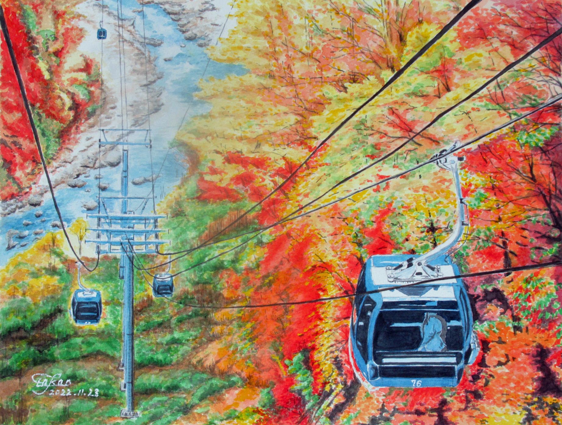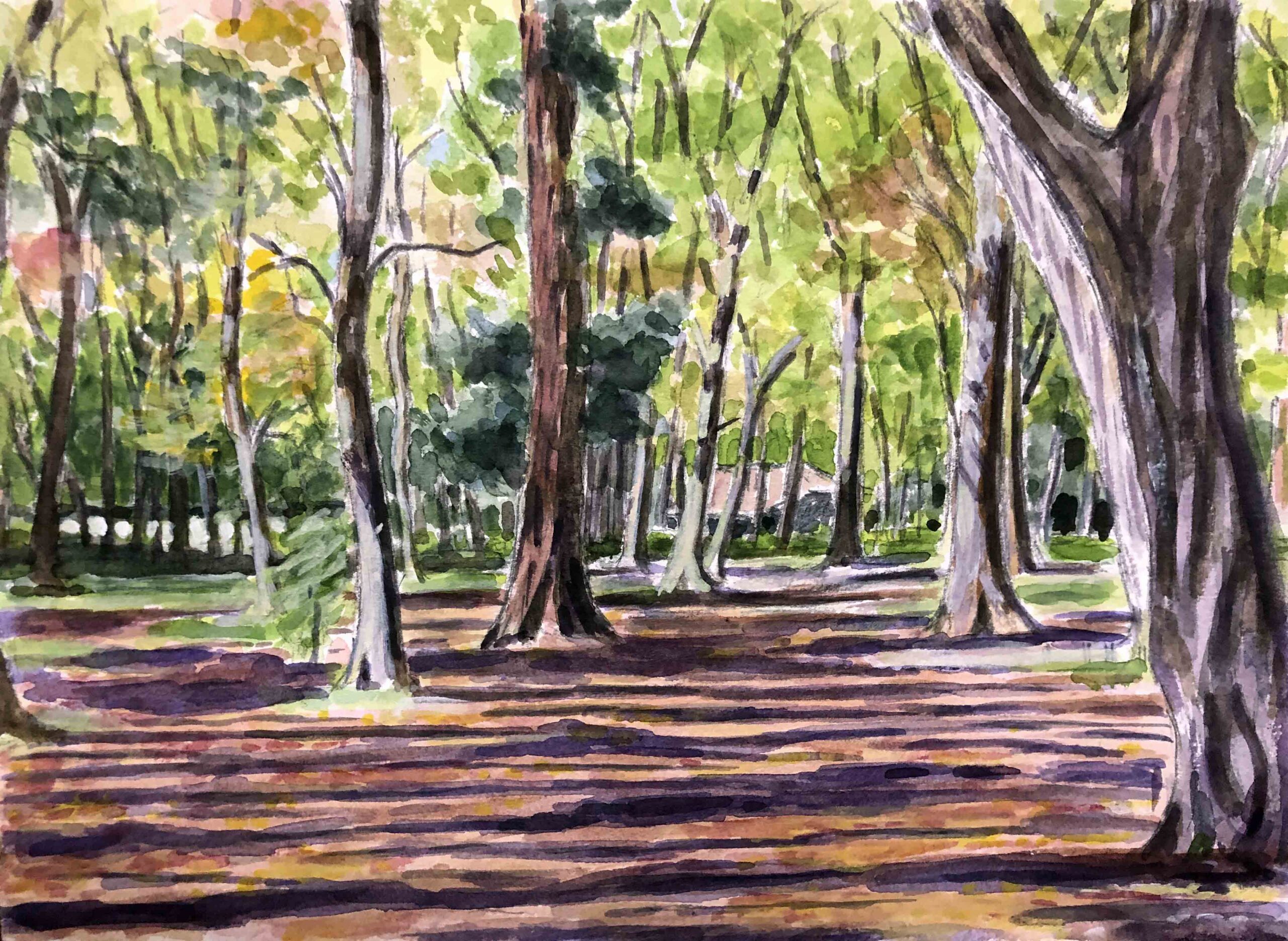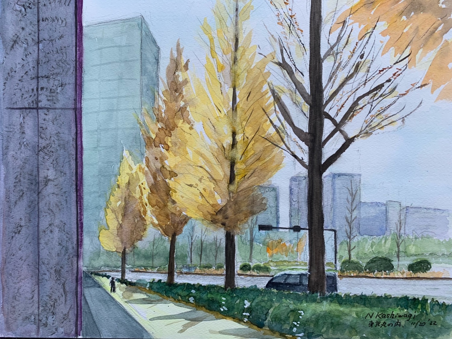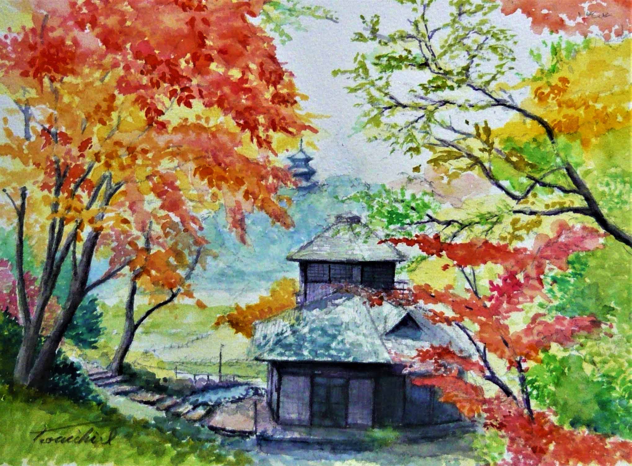 11月となれば、やはり寒くなってきますね。当会は高齢者が多いので、11月は野外スケッチをやめ、室内での制作に切り替えました。室内制作はゆっくりと作業できますので、皆さん念入りに制作に打ち込んでいます。途中ほかの人の作品を参考にしたり、その間楽しい会話が有ったりして、これは、室内制作ならではですね。