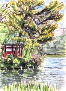 スケッチにいい気候になりました。今月は洗足池公園です。ずいぶん前に一度来たことがありますが、今度改めてじっくり回ってみて、なかなかいい所であることを実感しました。近所にお住いの画家さんから,「秋もきれいですよ」とのお勧めもあり、もう一度来てみたいと思います。