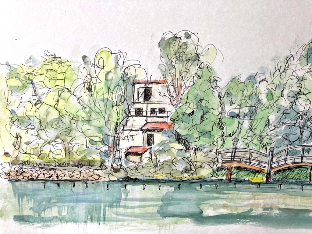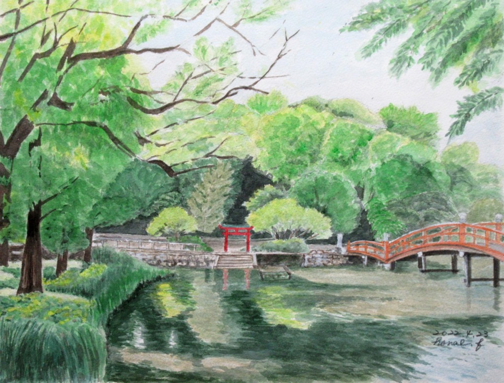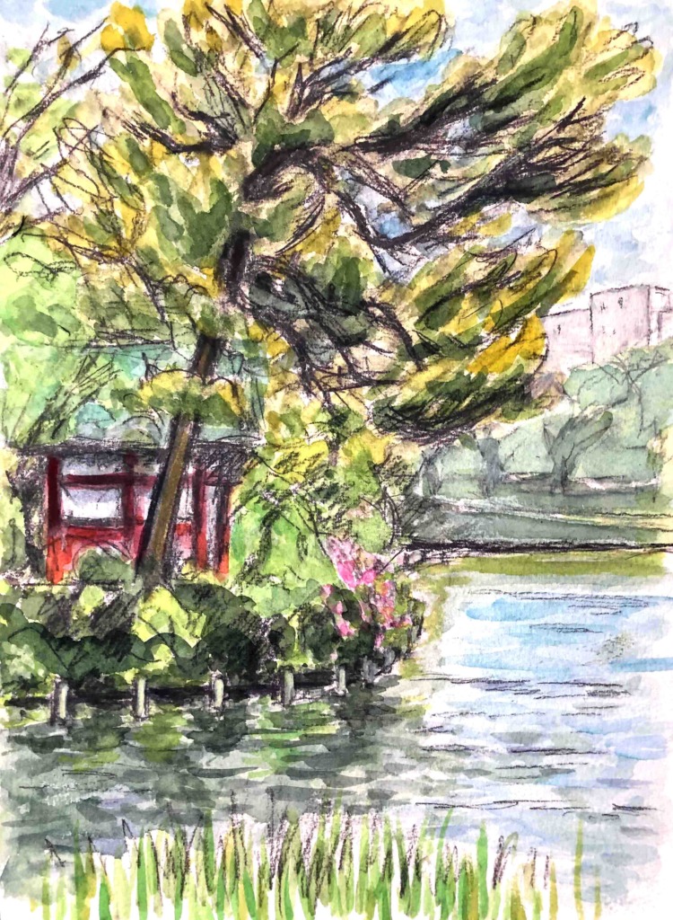 スケッチにいい気候になりました。今月は洗足池公園です。ずいぶん前に一度来たことがありますが、今度改めてじっくり回ってみて、なかなかいい所であることを実感しました。近所にお住いの画家さんから,「秋もきれいですよ」とのお勧めもあり、もう一度来てみたいと思います。