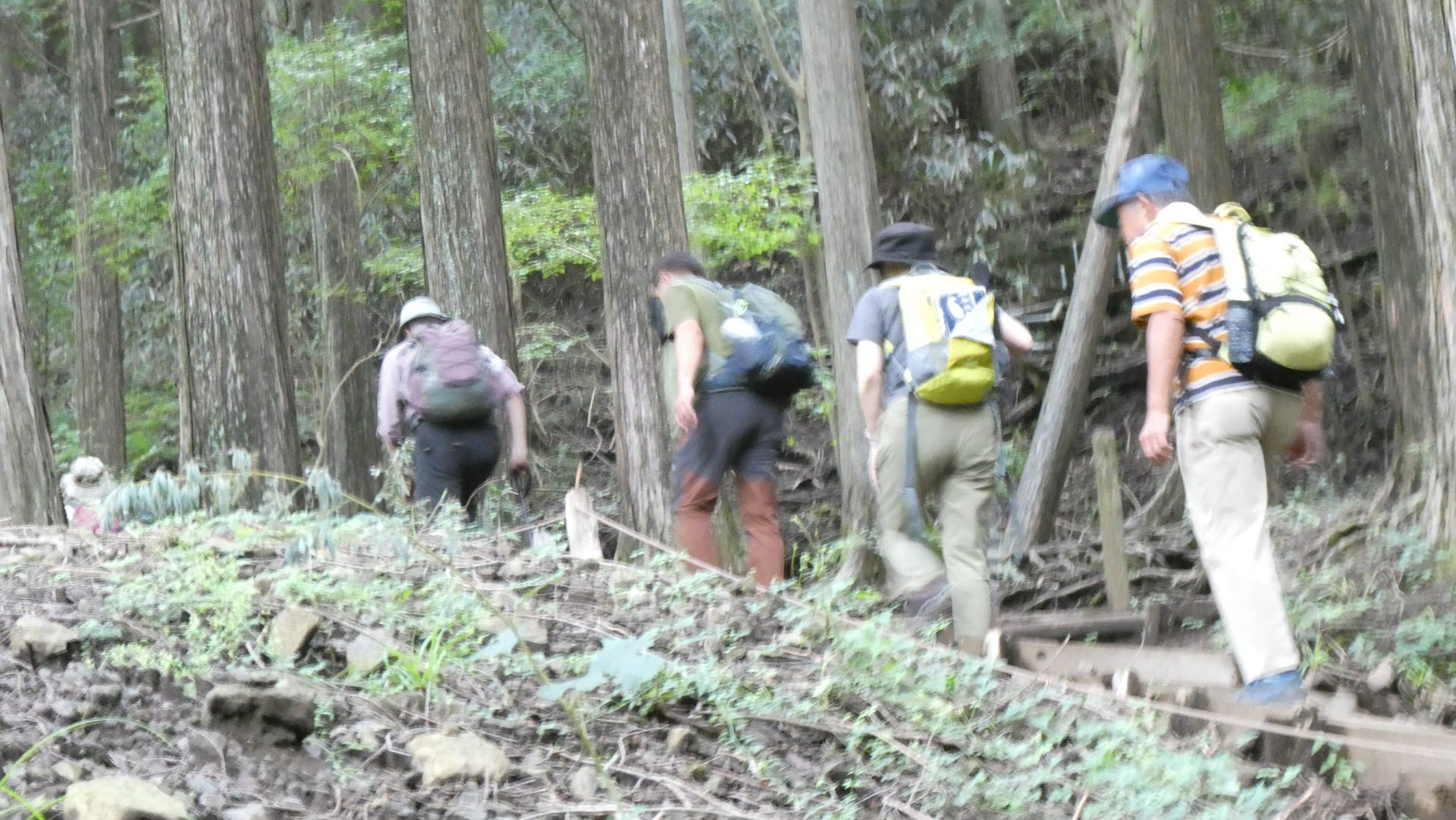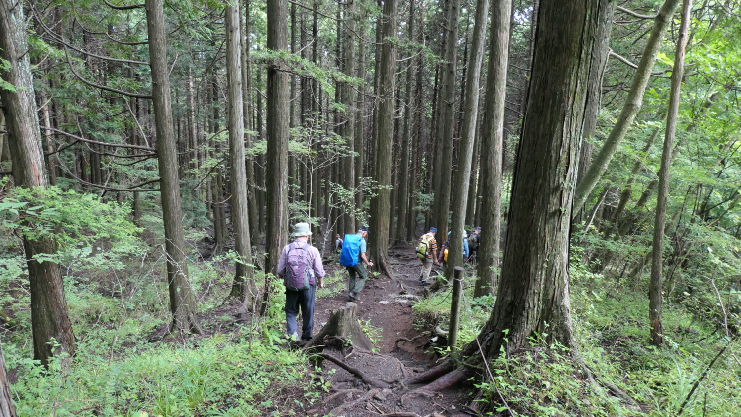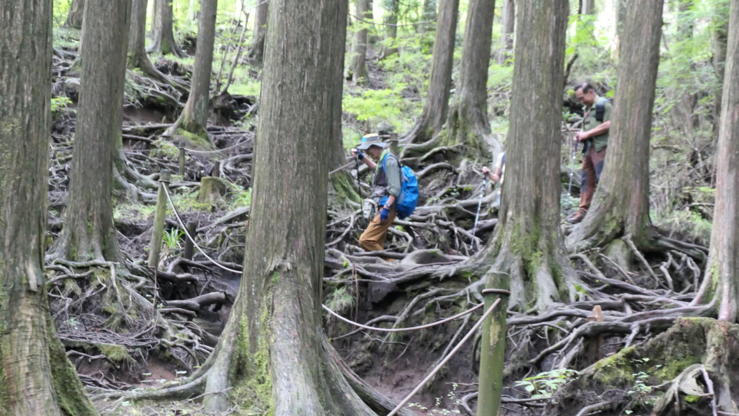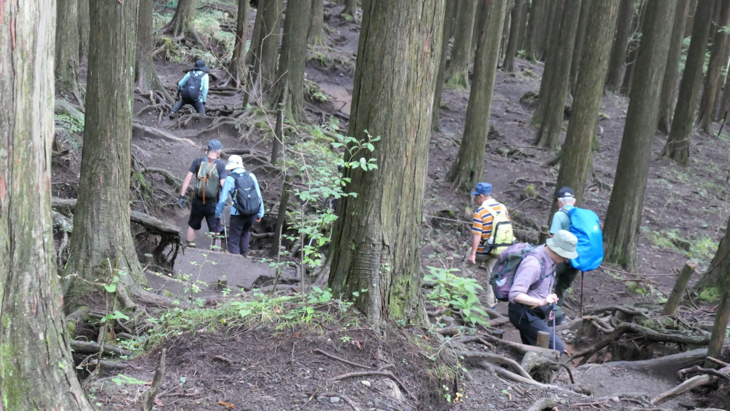 - 杉の根に足を取られないよう注意