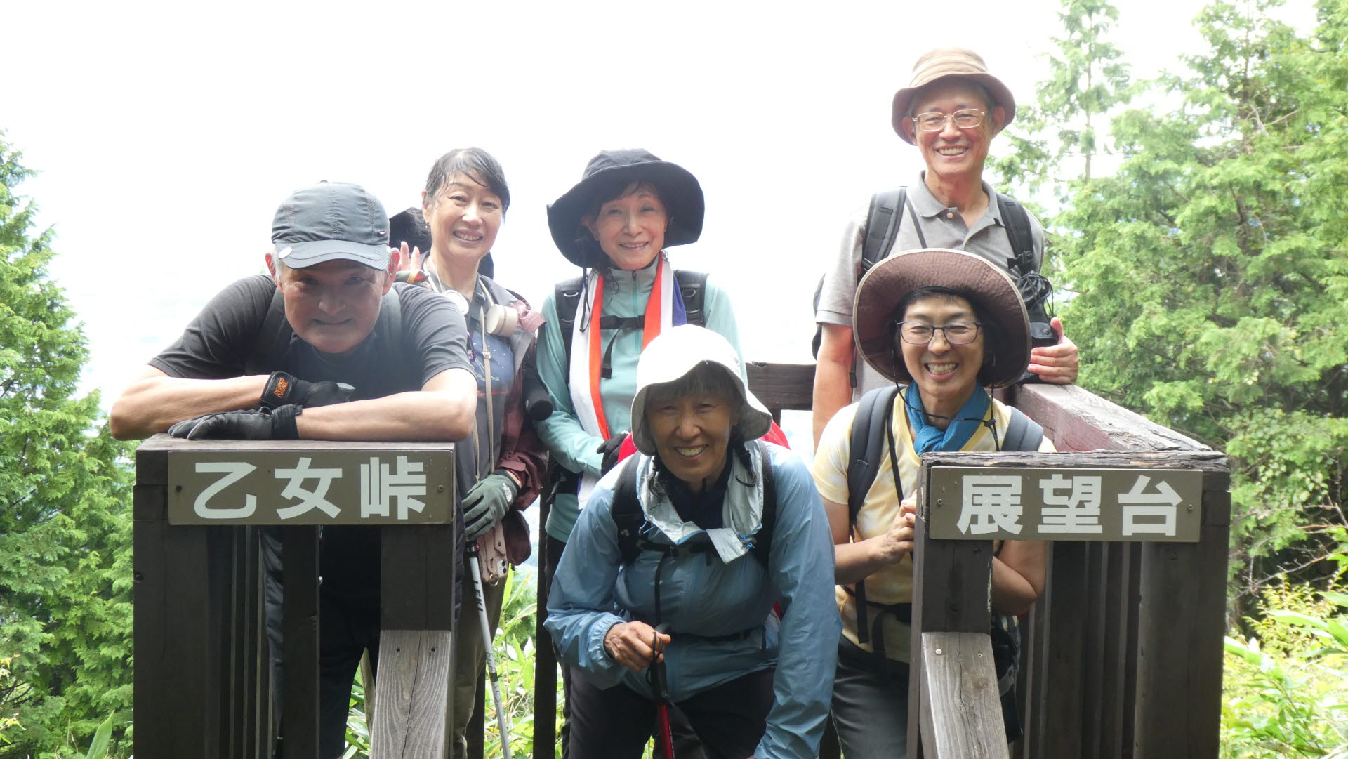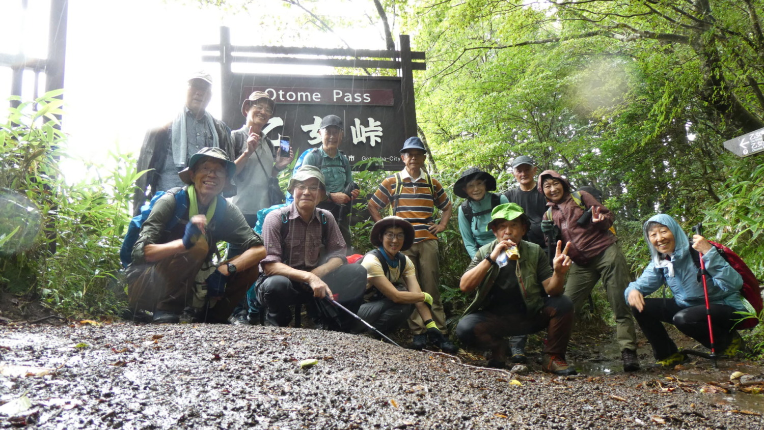 - 10:46 小雨になった乙女峠で記念撮影(参加者は12名)