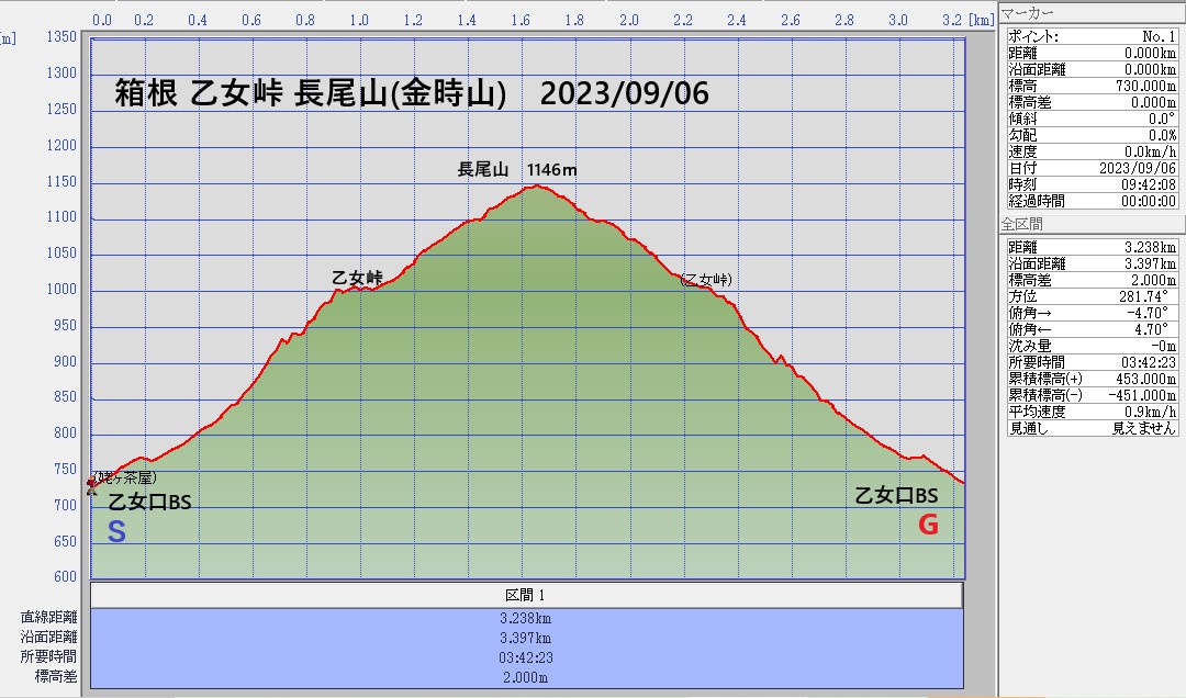 - 箱根・乙女峠ー長尾山断面図