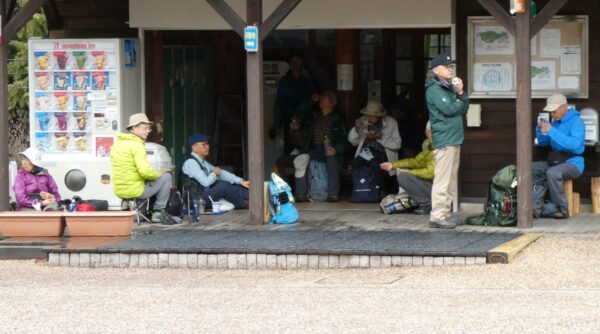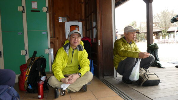 - 10:40 管理棟内で霧雨を避けて早めの昼食