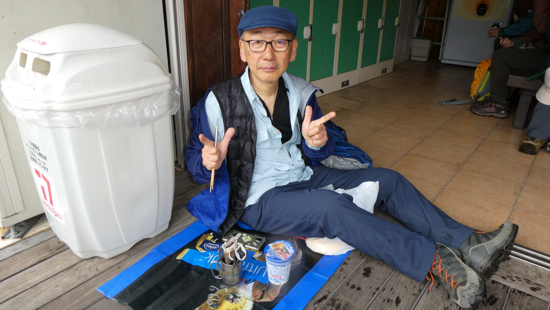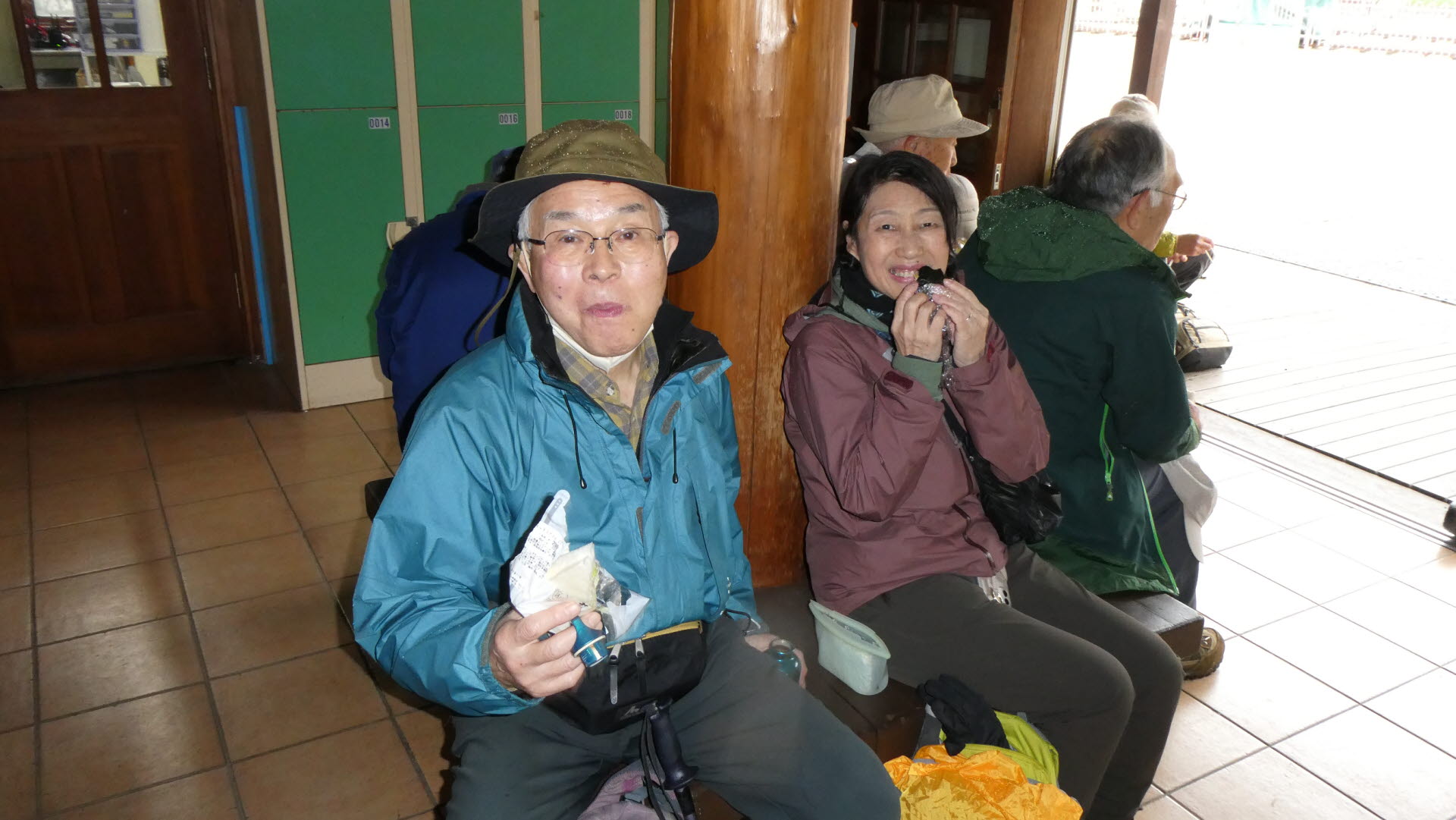 - 10:40 管理棟内で霧雨を避けて早めの昼食