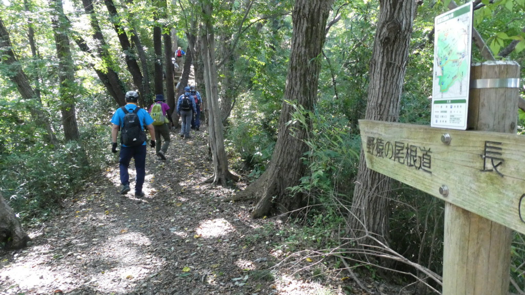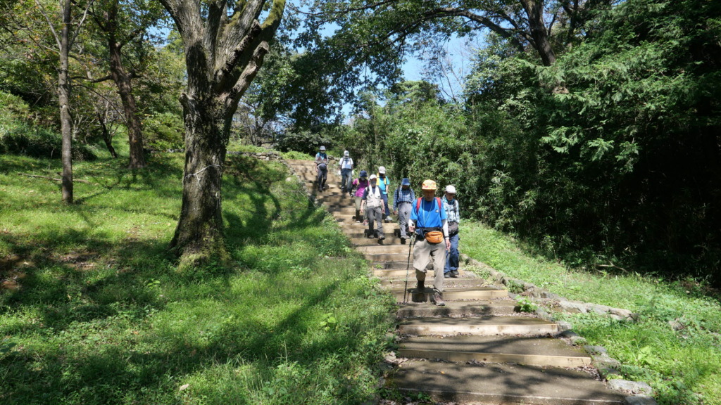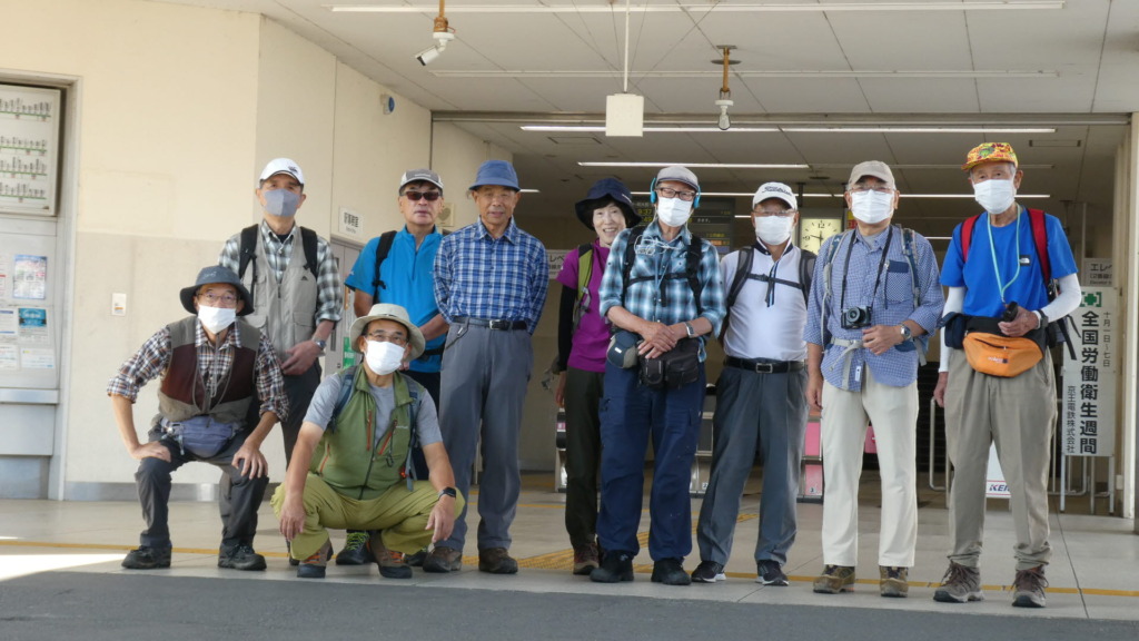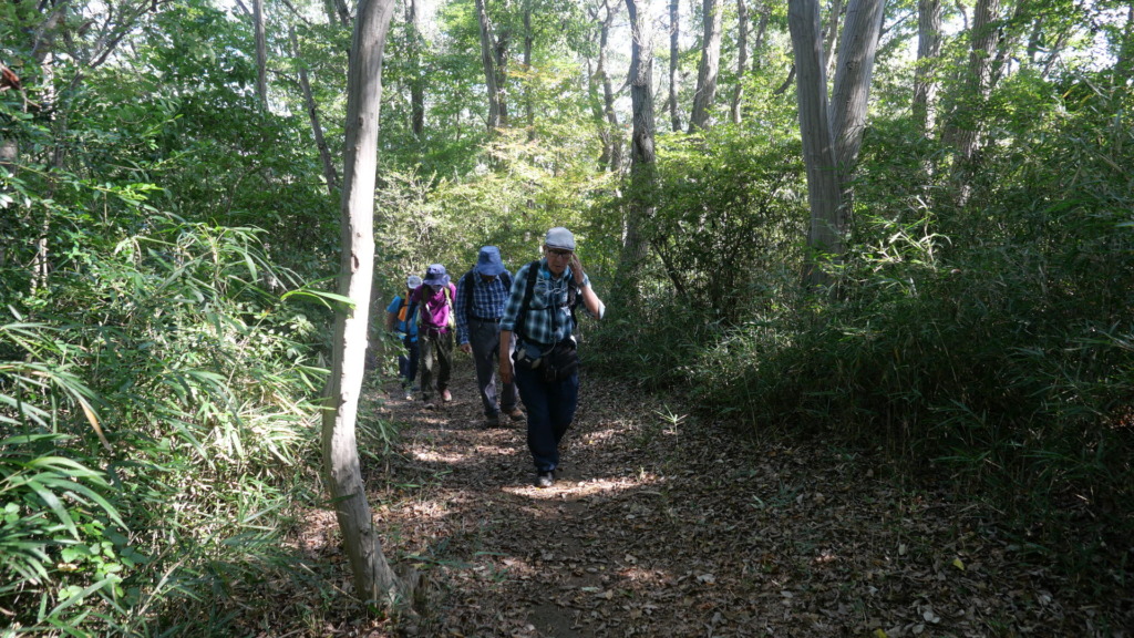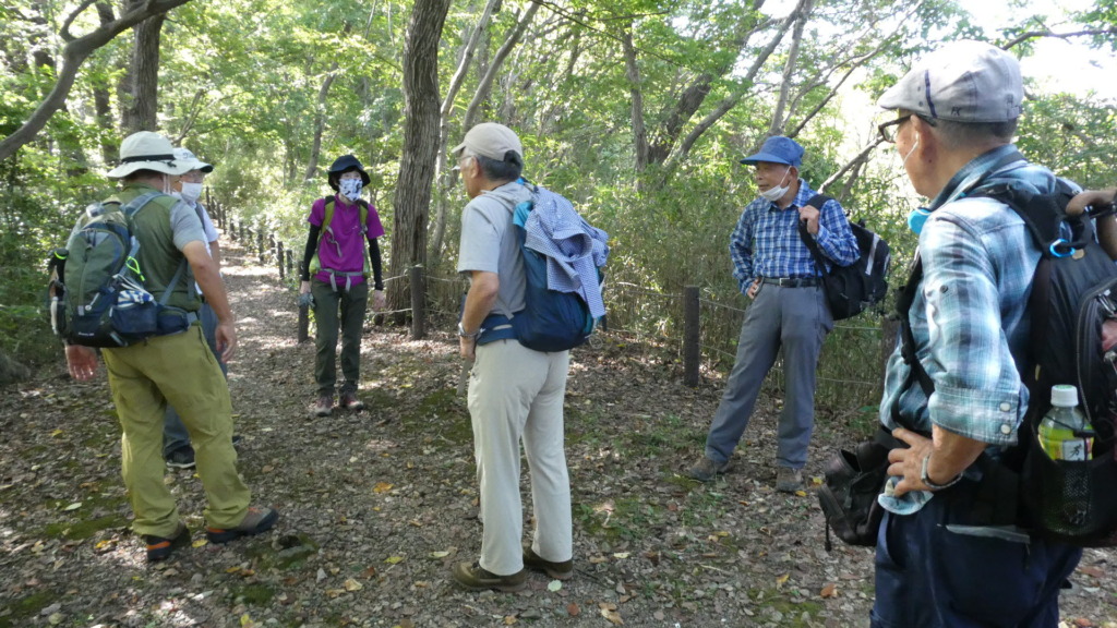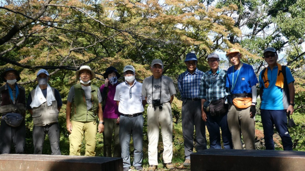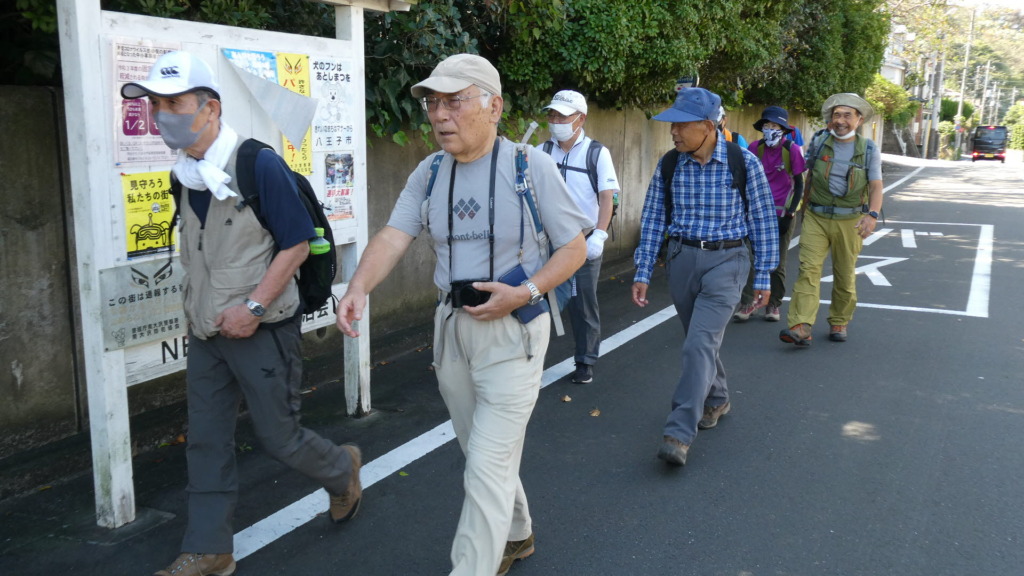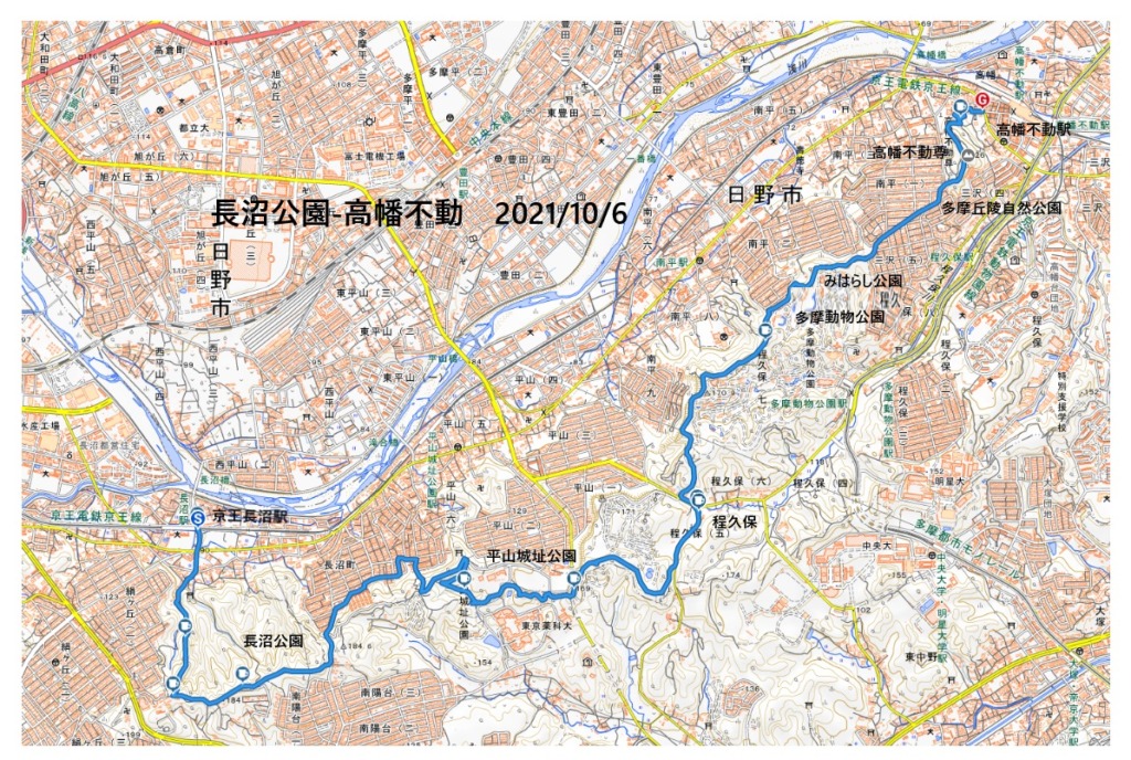 2021年10月山行は半年ぶりの再開で、京王線長沼駅9時30分集合。参加は10名でした。コースは、長沼公園~平山城址公園~多摩丘陵コースを進み高幡不動に至る縦走でした。 晴天に恵まれ、記念写真を撮り出発すると前方に長沼公園の山が見えてきました。長沼公園は、いきなり高低差が100mの登り坂でしたが木々は生き生きと輝いており、展望台からの奥多摩の山並みも素晴らしく気持ちの良いコースでした。平山城址公園は、高低差のある起伏に富んだコースで自然と緑を満喫できるコースでした。多摩丘陵コースは、多摩動物園境界フェンス沿いの上り下りが続き精神的に一番のダメージがでる道でしたが、終盤に景色の良い所があり、奥多摩の山々がくっきり見えました。高幡不動境内に予定より早く全員無事に到着しました。コースタイムは、4時間30分でした。