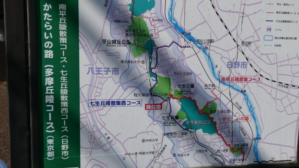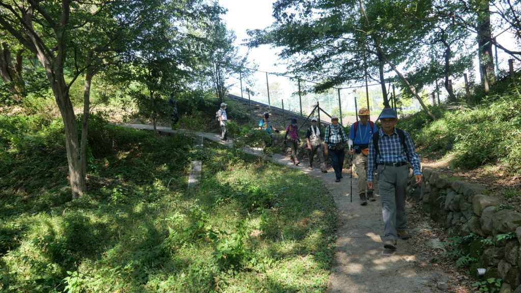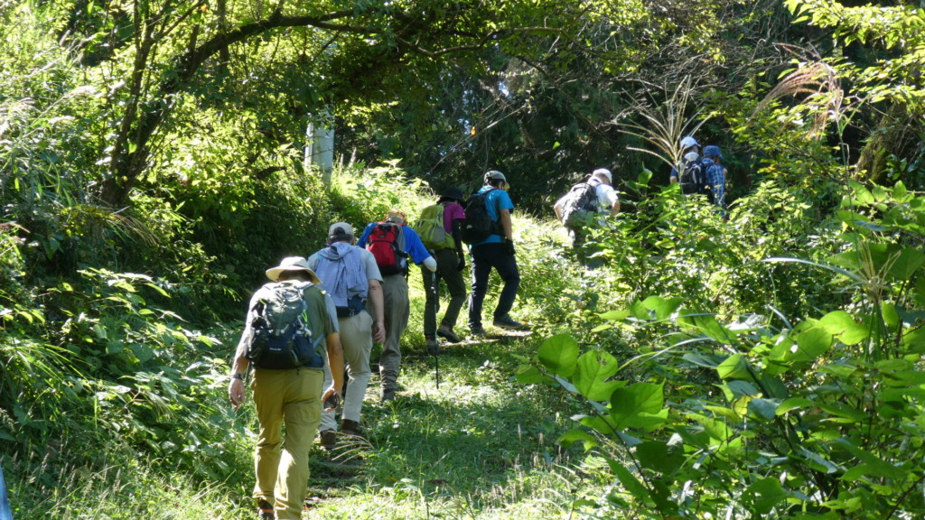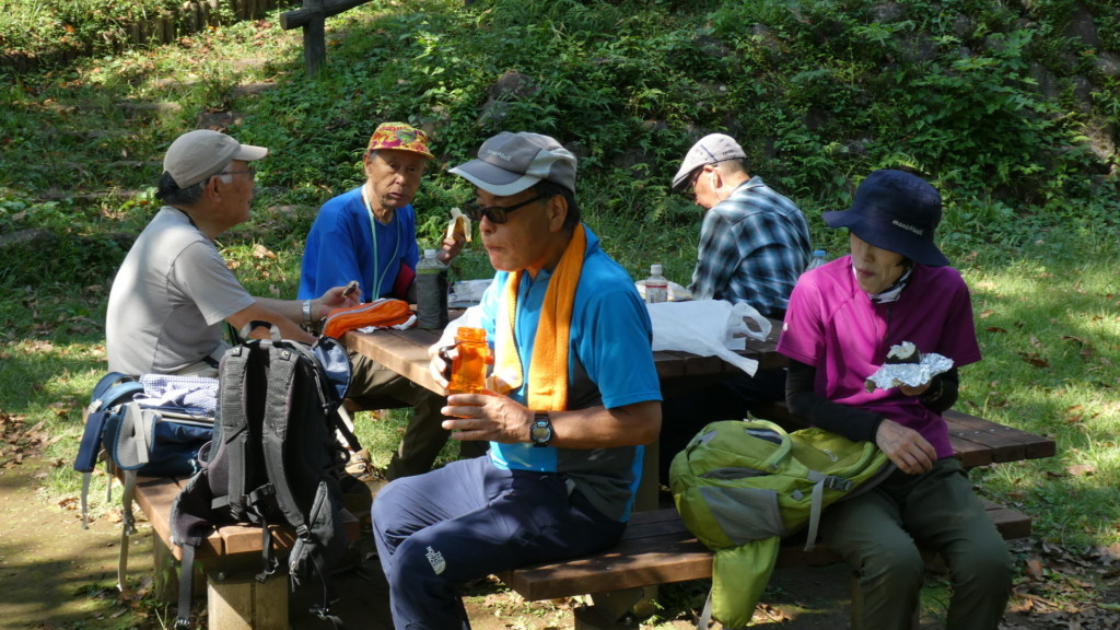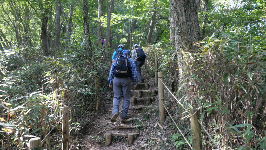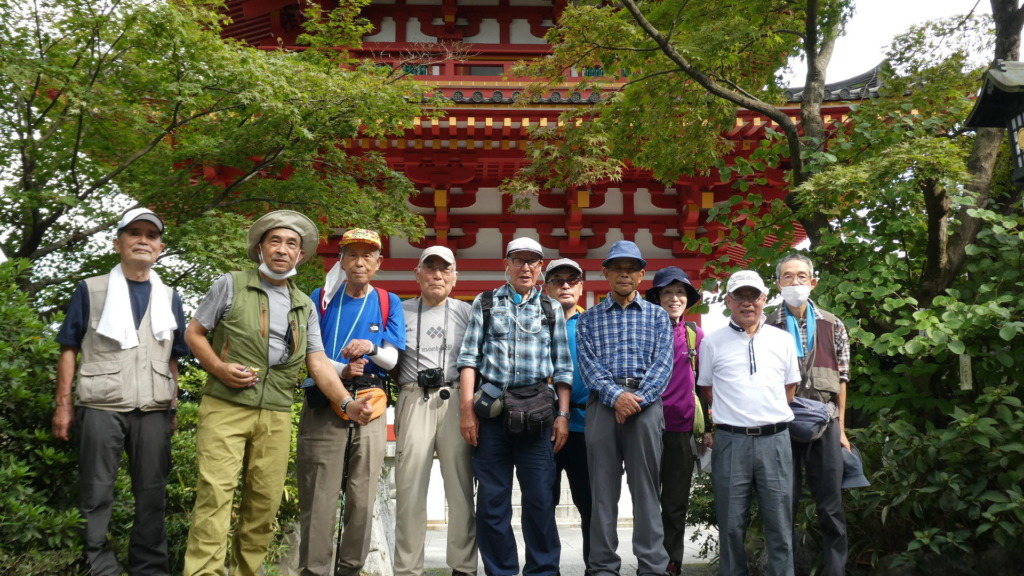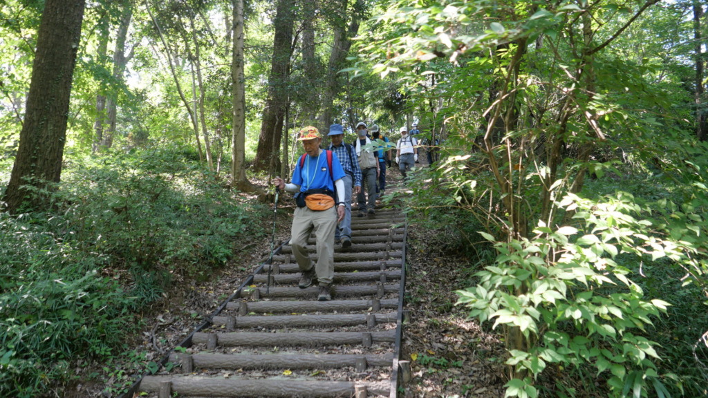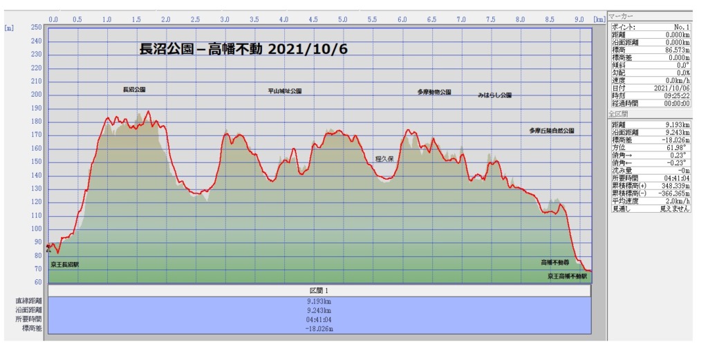 2021年10月山行は半年ぶりの再開で、京王線長沼駅9時30分集合。参加は10名でした。コースは、長沼公園~平山城址公園~多摩丘陵コースを進み高幡不動に至る縦走でした。 晴天に恵まれ、記念写真を撮り出発すると前方に長沼公園の山が見えてきました。長沼公園は、いきなり高低差が100mの登り坂でしたが木々は生き生きと輝いており、展望台からの奥多摩の山並みも素晴らしく気持ちの良いコースでした。平山城址公園は、高低差のある起伏に富んだコースで自然と緑を満喫できるコースでした。多摩丘陵コースは、多摩動物園境界フェンス沿いの上り下りが続き精神的に一番のダメージがでる道でしたが、終盤に景色の良い所があり、奥多摩の山々がくっきり見えました。高幡不動境内に予定より早く全員無事に到着しました。コースタイムは、4時間30分でした。
