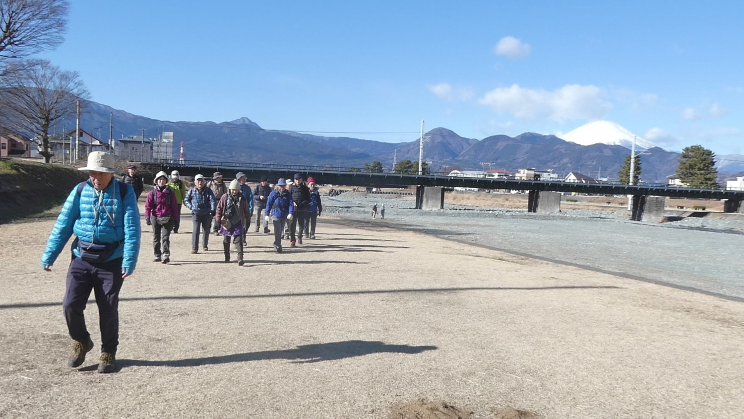 - 9:36 川原川河川敷で富士山をバックに記念撮影