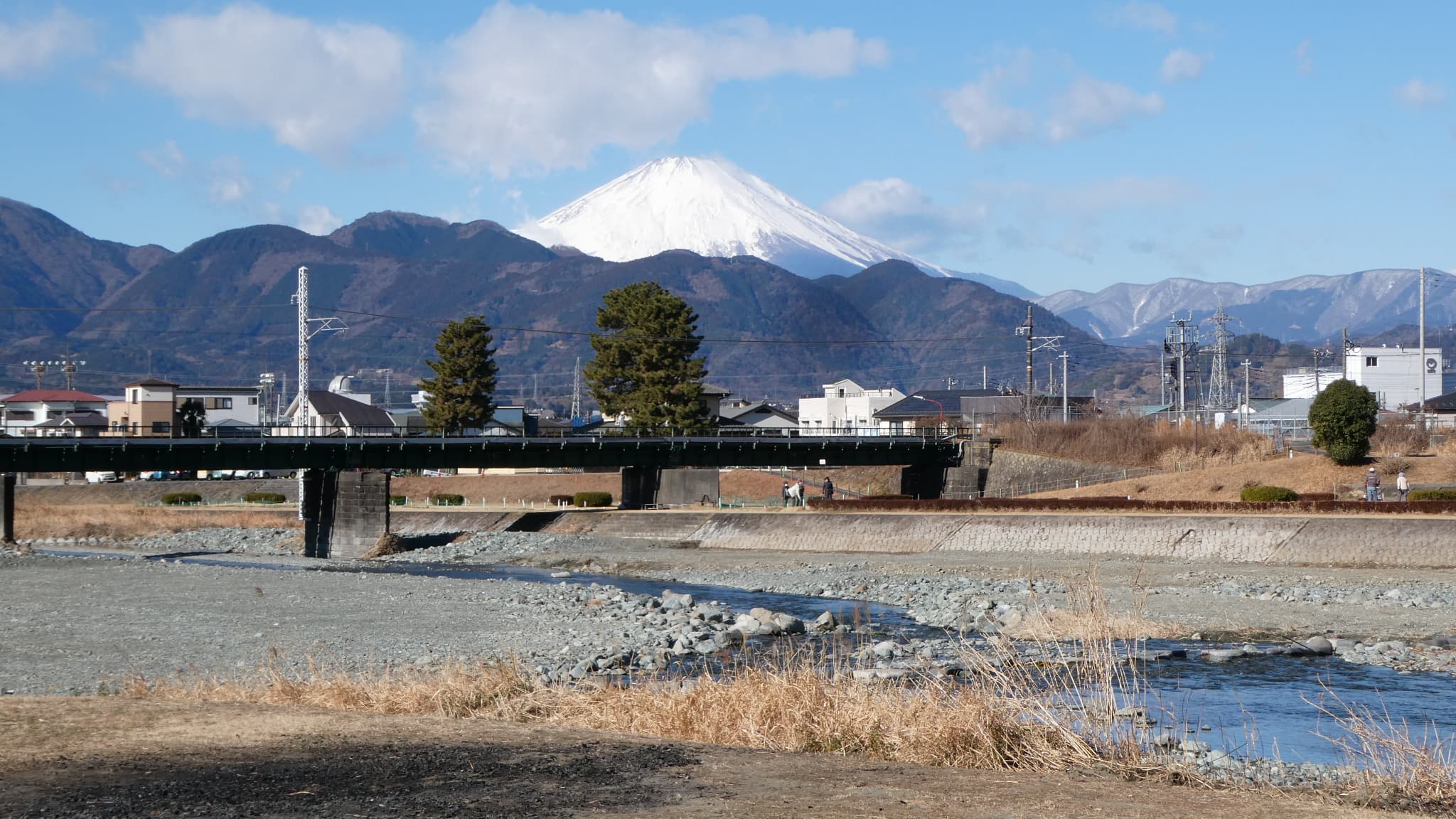 - 9:26 天気が良いのでコースを変更し、富士山がよく見える川原川土手へ向かいます