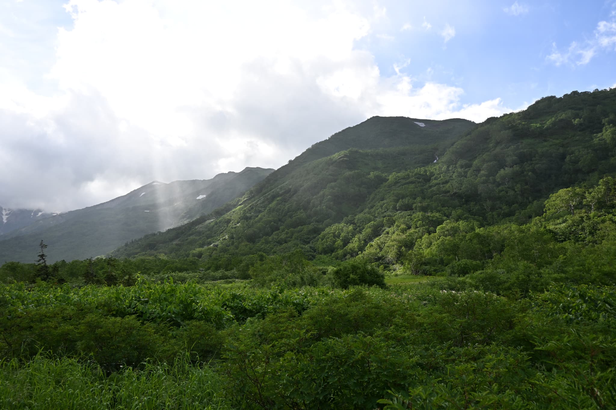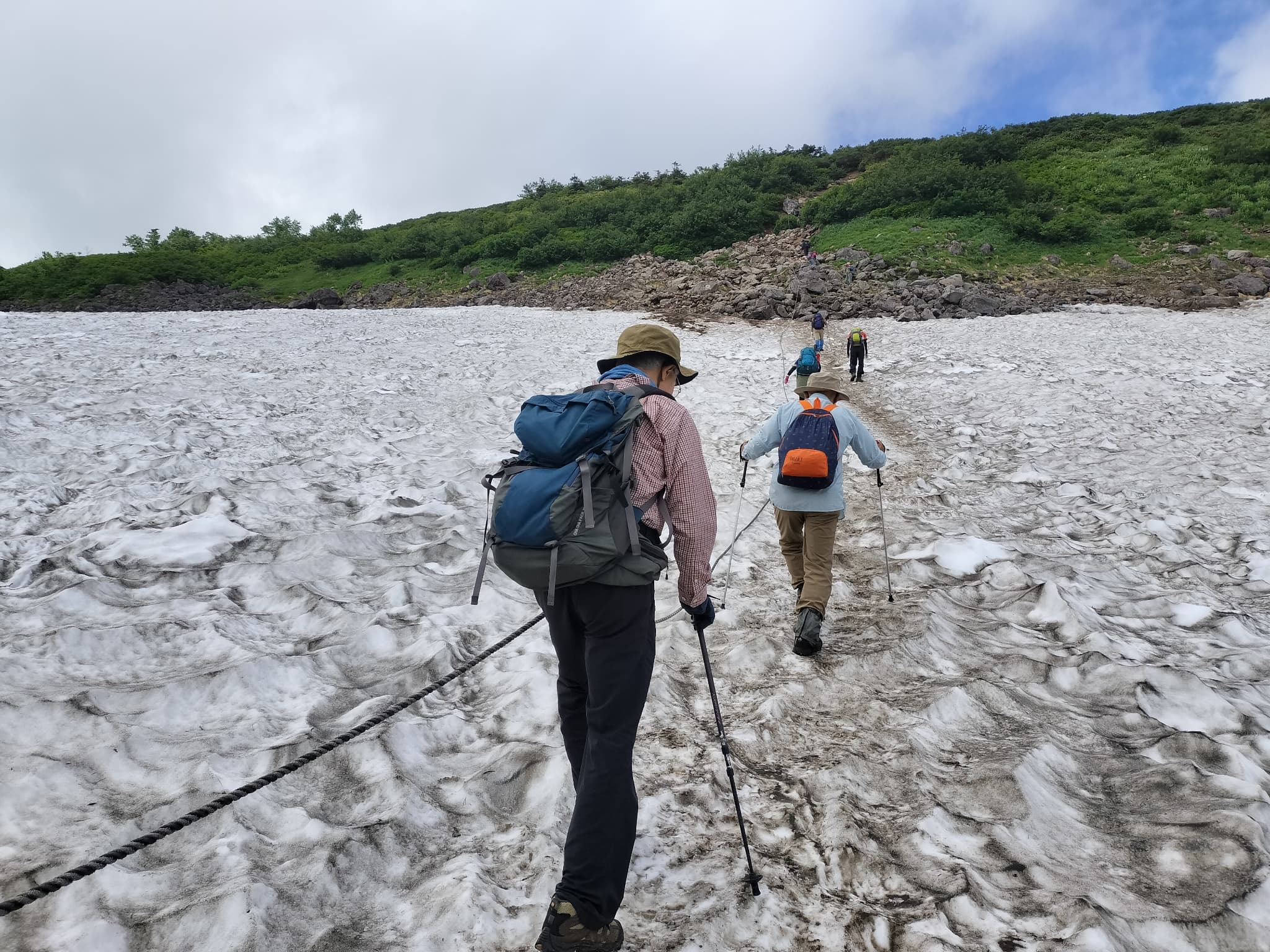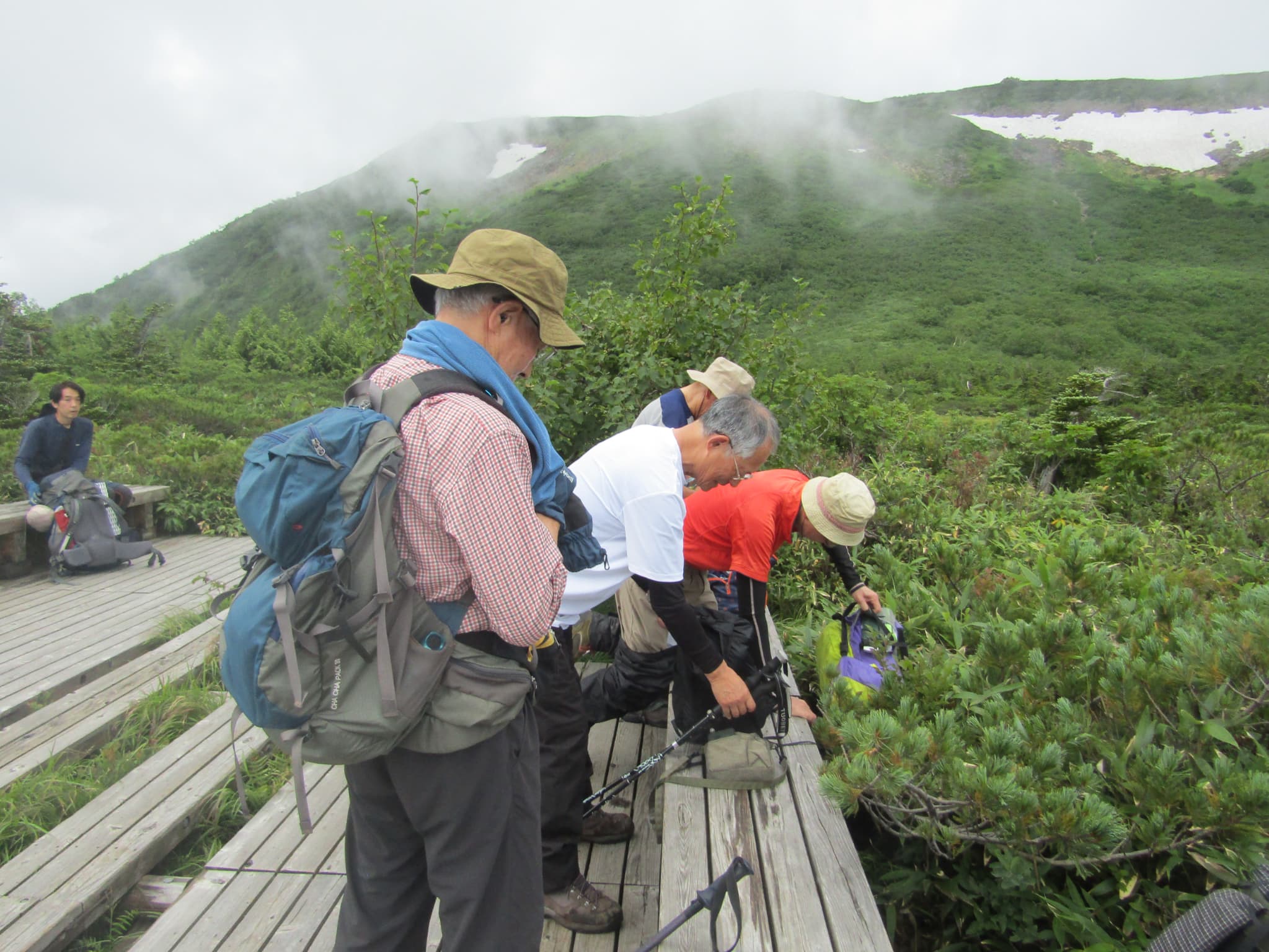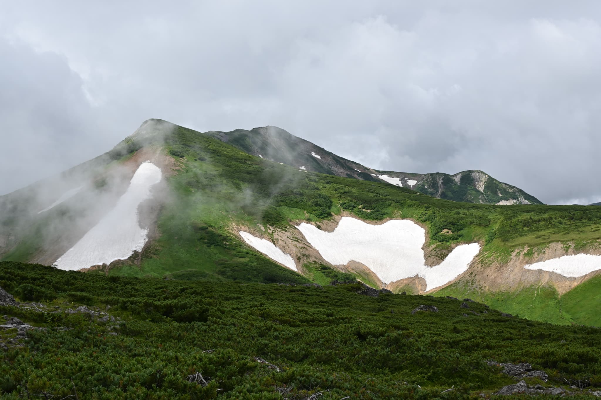 結果として、2日目は昼過ぎに少し小雨になった時間帯に「栂池自然園を散策」、3日目は少し晴れ間も出る中「白馬大池まで往復」できました。当初の目論見は果たせませんでしたが、雪渓を歩き花々と山の景色を楽しめました。