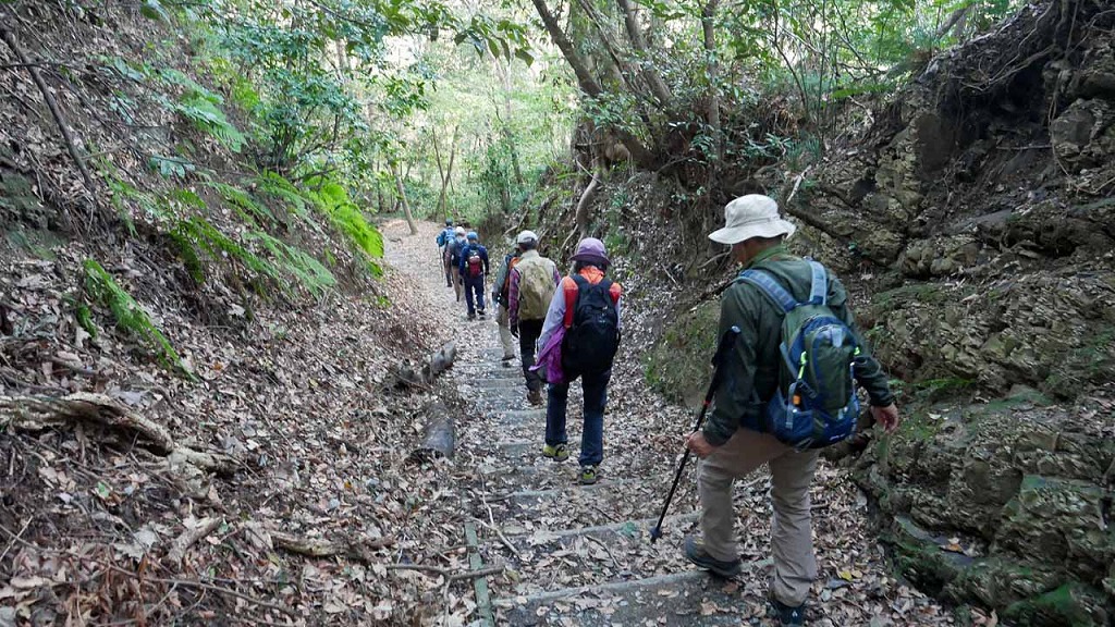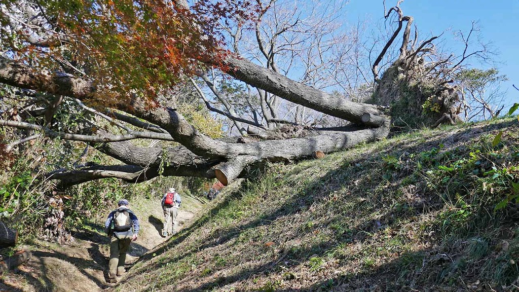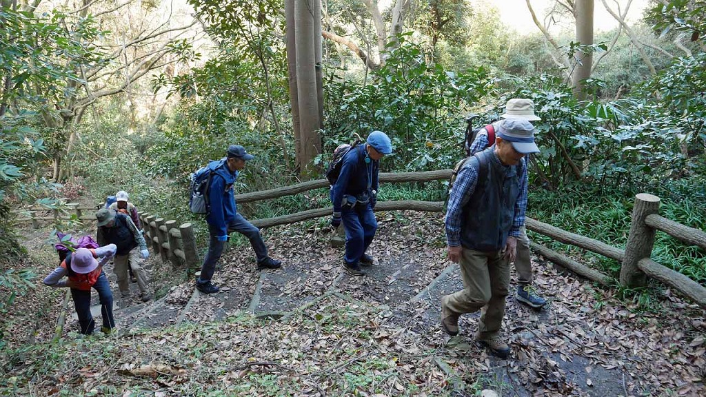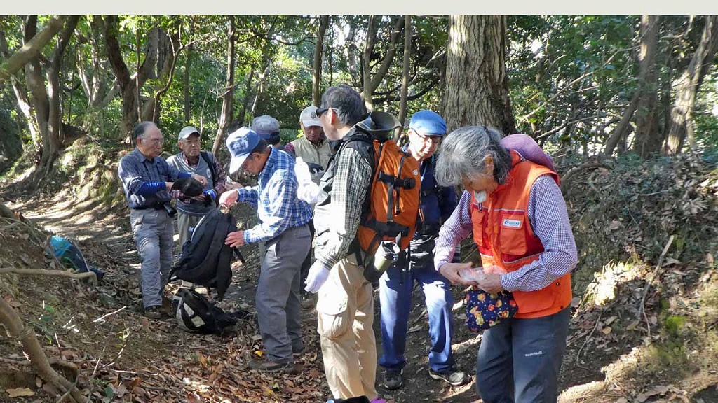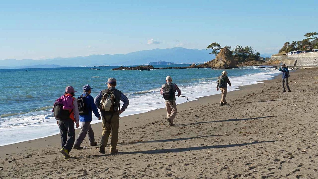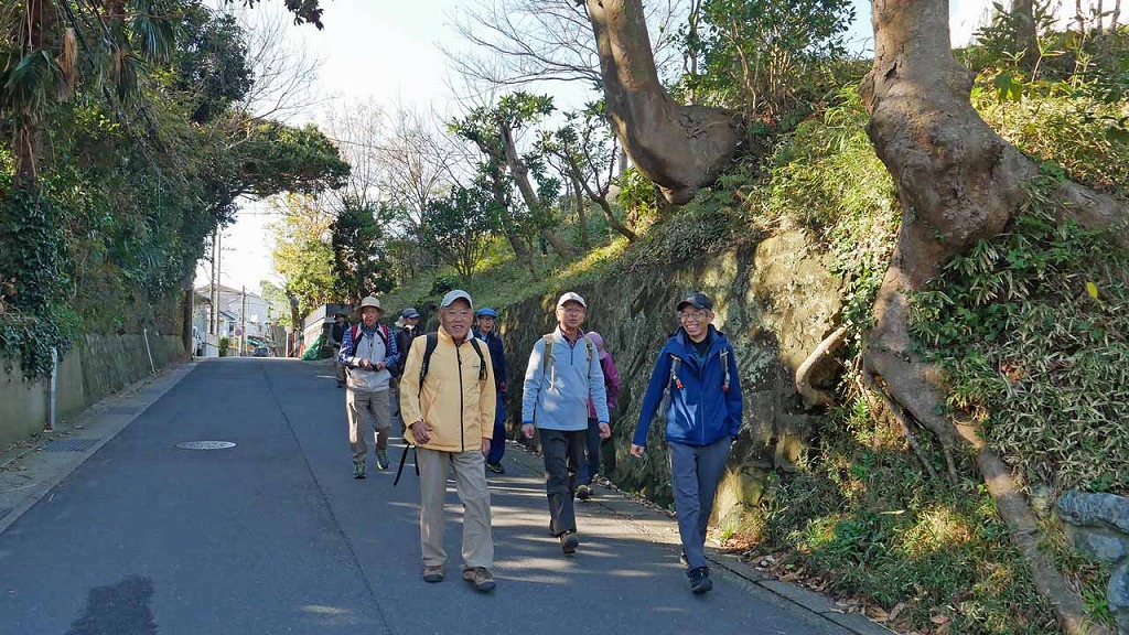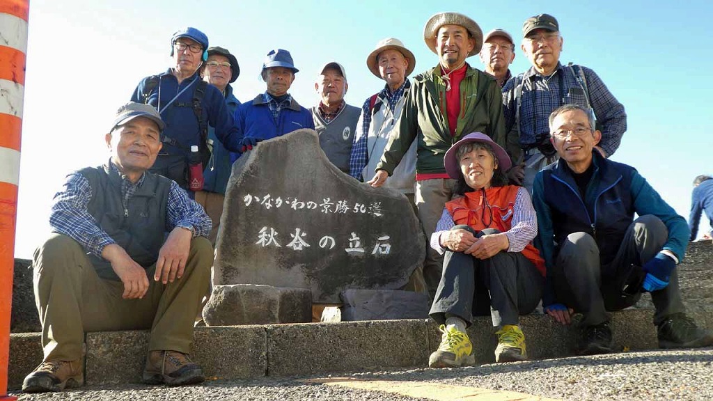 山頂で昼食をとり、記念撮影を済ませた後、往路と同じ道で下山を開始しました。下山後は秋谷の海岸に出て名勝「秋谷の立石」まで歩き絶景を堪能した後、路線バスで「逗子駅」に向かい解散しました。