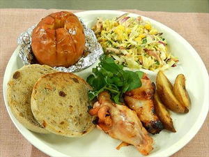 - 鶏手羽元のオレンジ焼き・焼きリンゴ キャベツとツナのコールスロー&マフィン