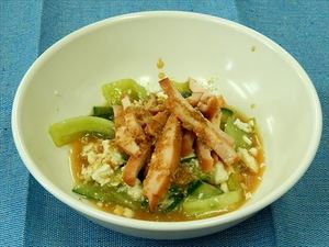 - 蒸し鶏ときゅうりのごま酢ダレ