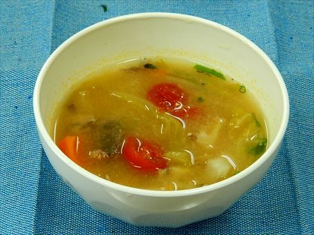 - さば缶詰とキャベツの味噌汁
