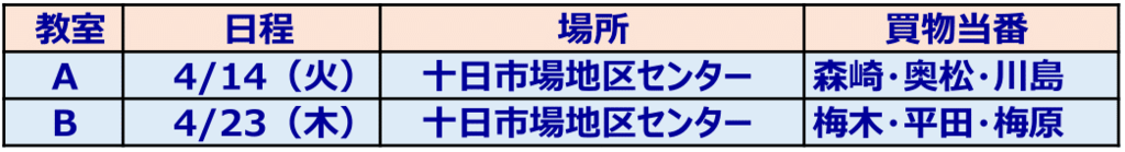 料楽会のご案内 料理リスト(直近2年) 買い物当番
