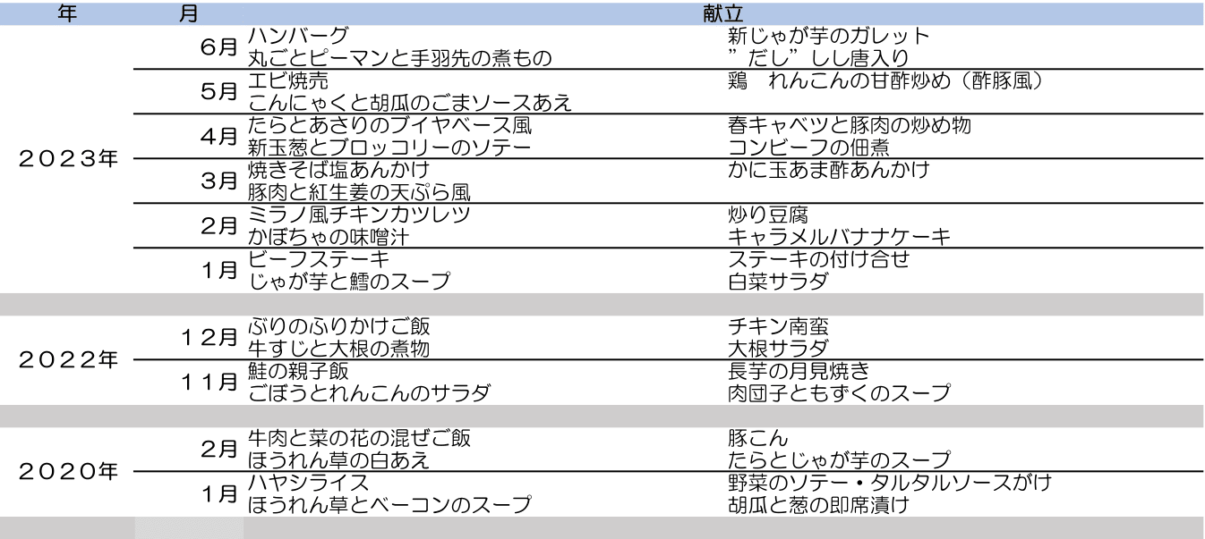 ☞料理リスト(3年以上前)リニューアルしました